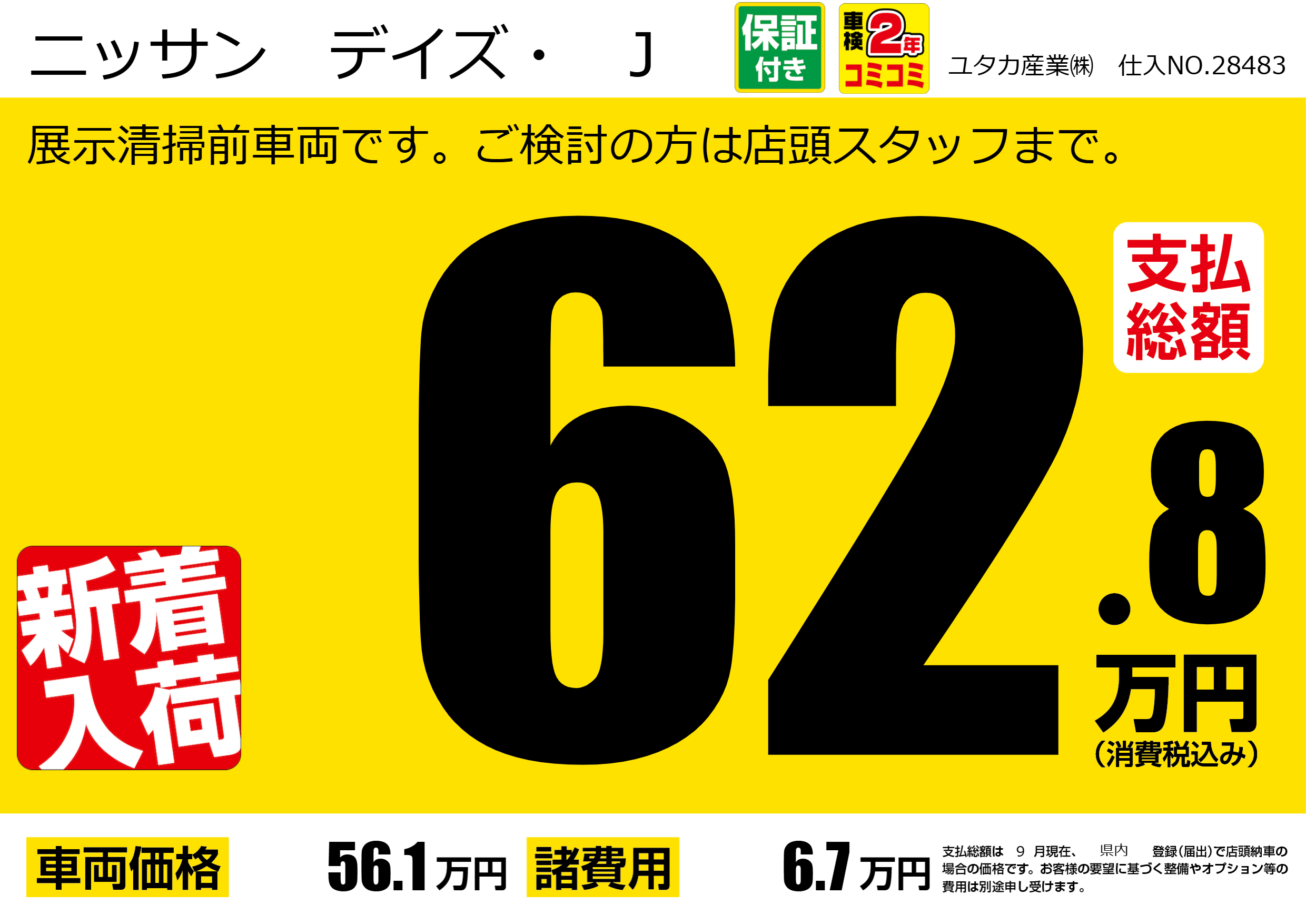 | 車名 | ニッサン デイズ・ J | グレード ミッション 排気量 |