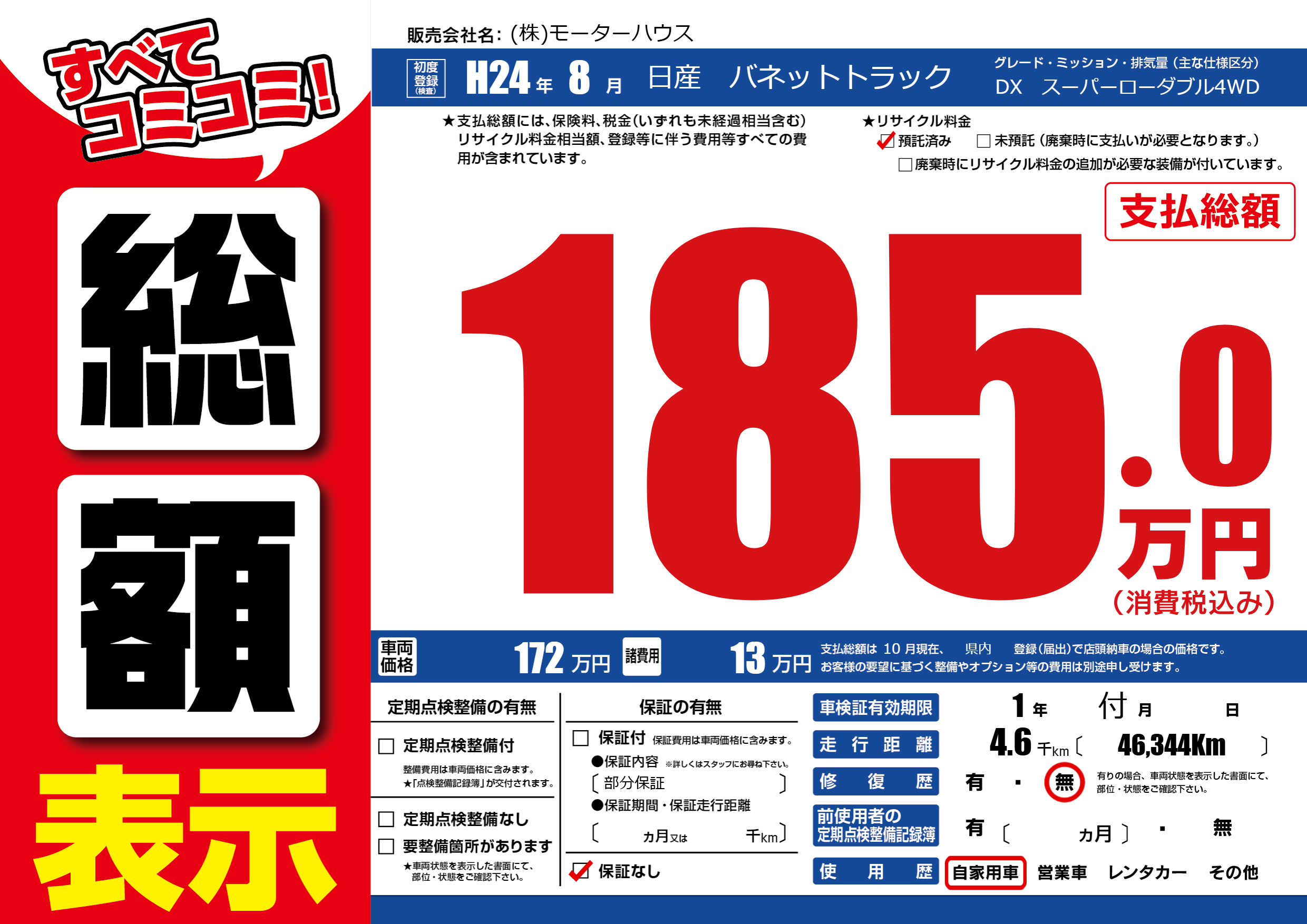 なし | 車検制限 | 1年付月---月 |