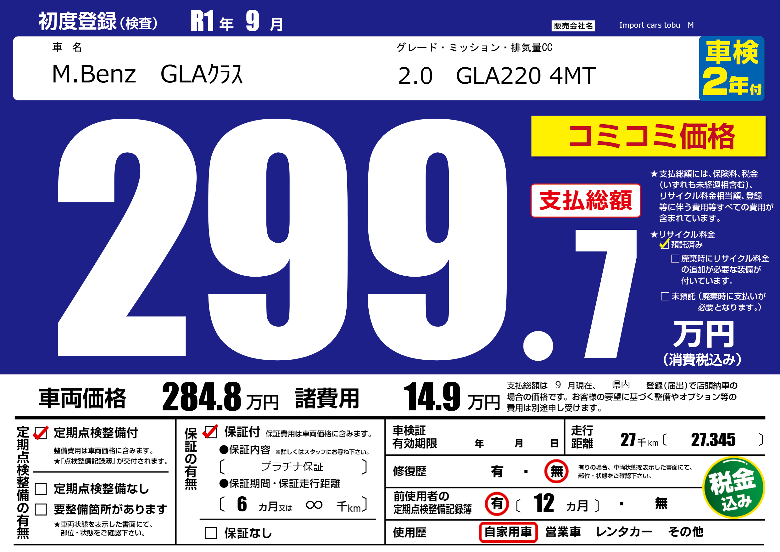 | 走行キロ | 2.7万km | ||