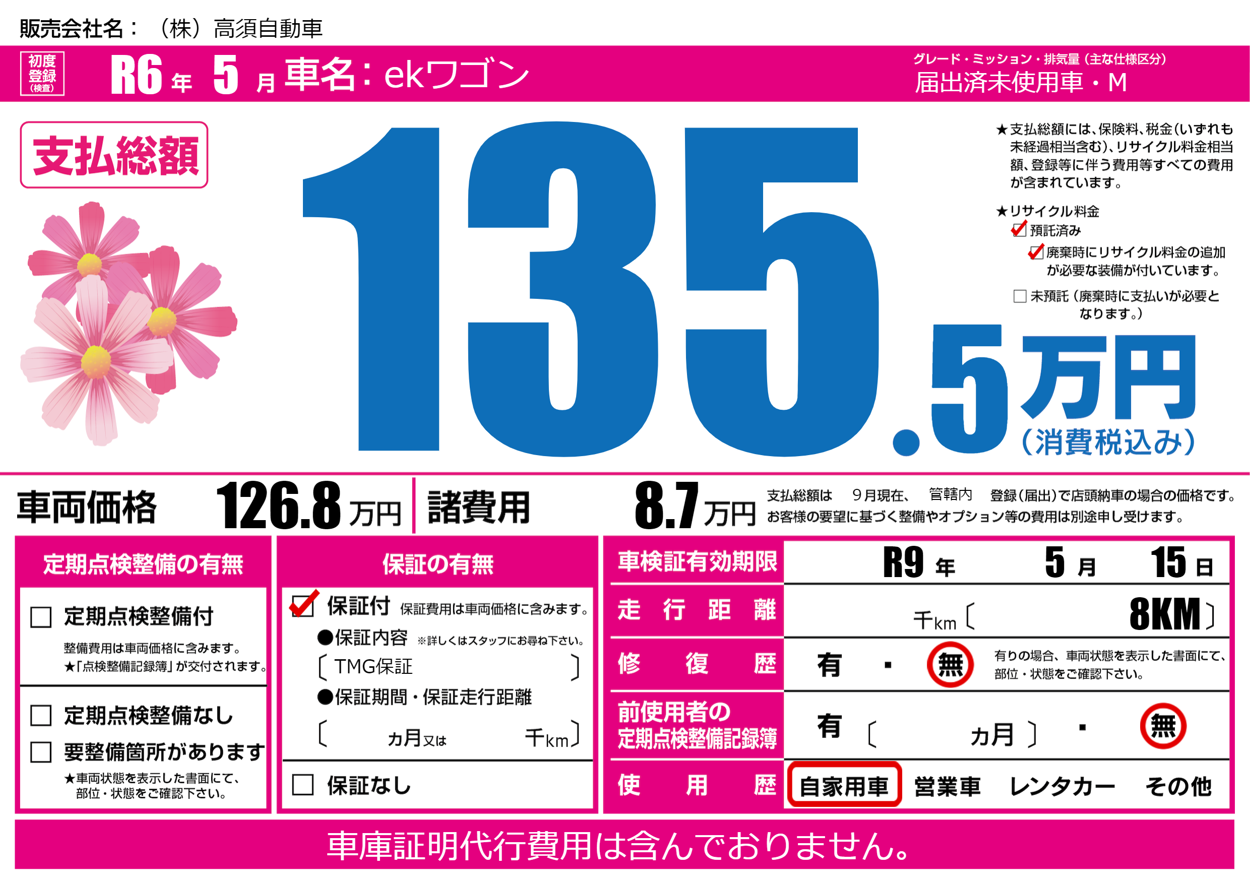 なし | 車検制限 | R9年5月15月 |