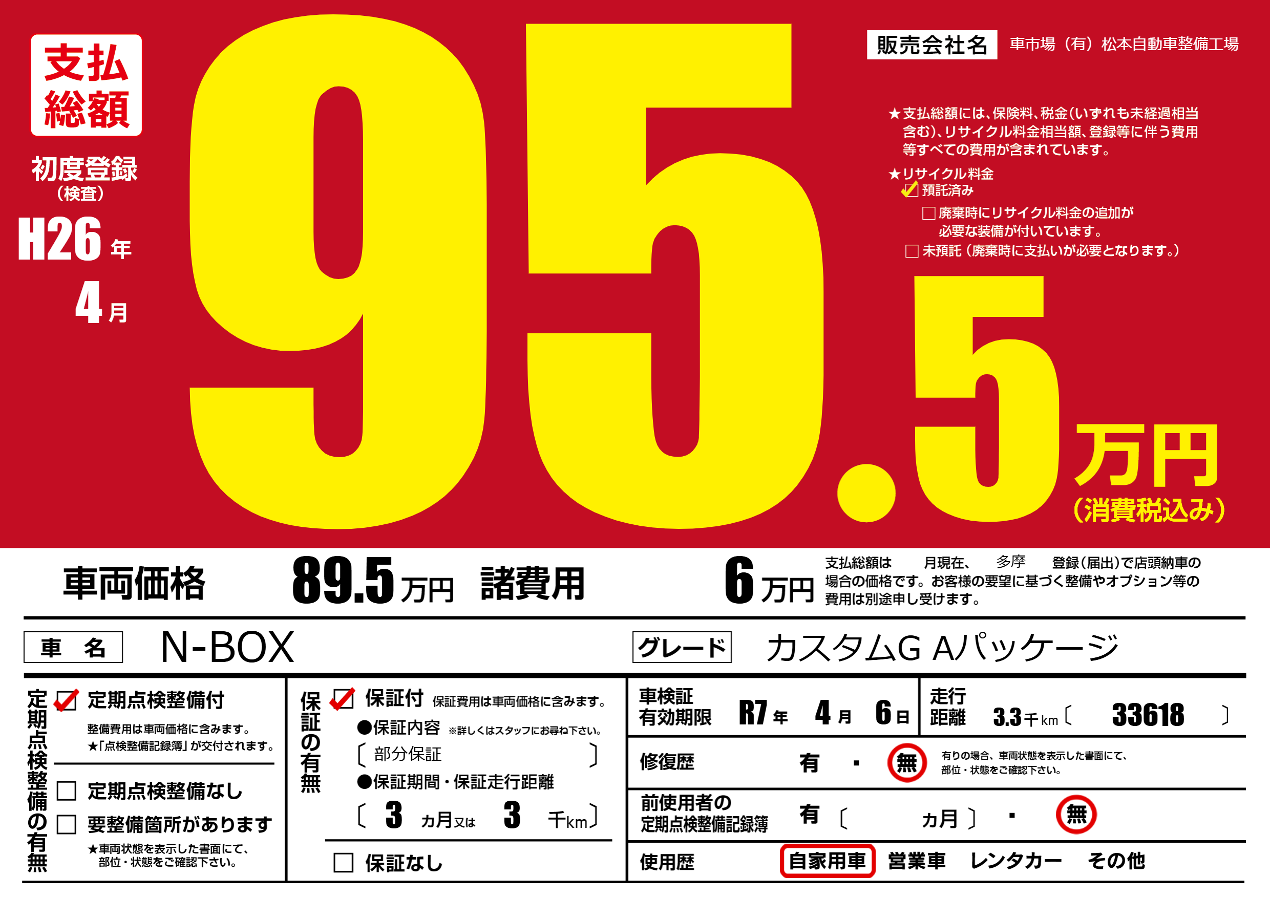 なし | 車検制限 | R7年4月6月 |