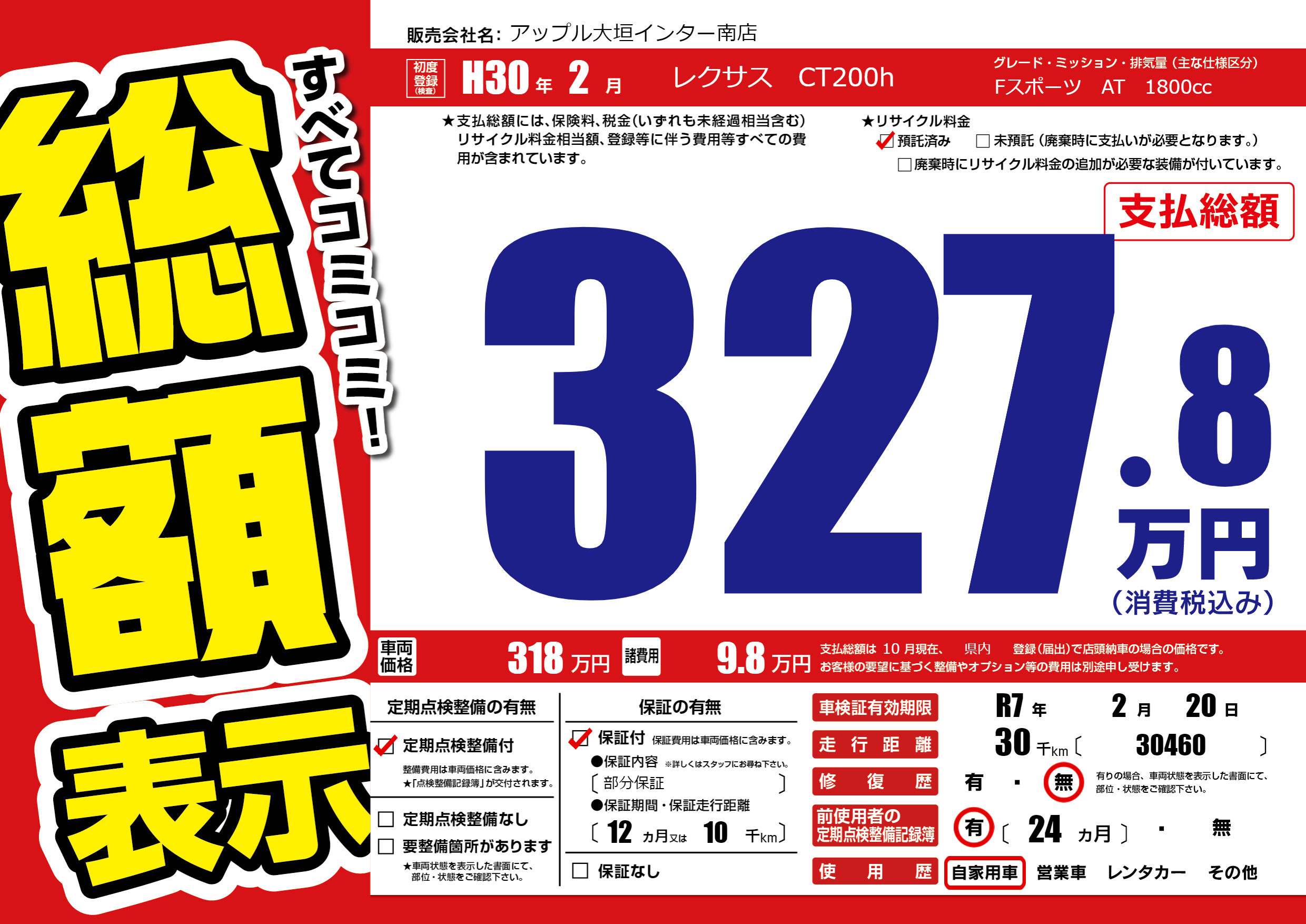 | 車名 | レクサス CT200h | グレード ミッション 排気量 |