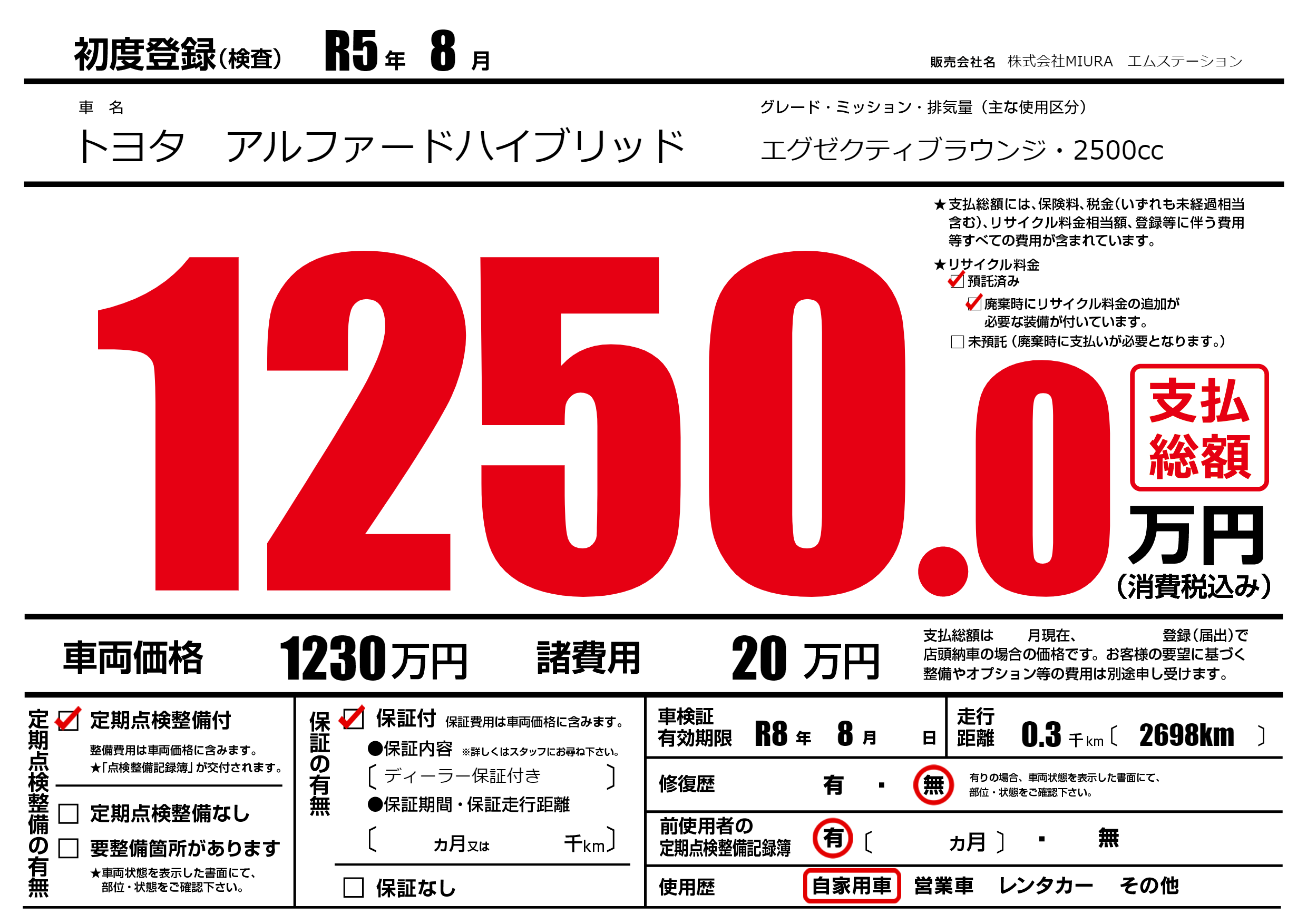| 初年度登録 | R5年8月 | ||