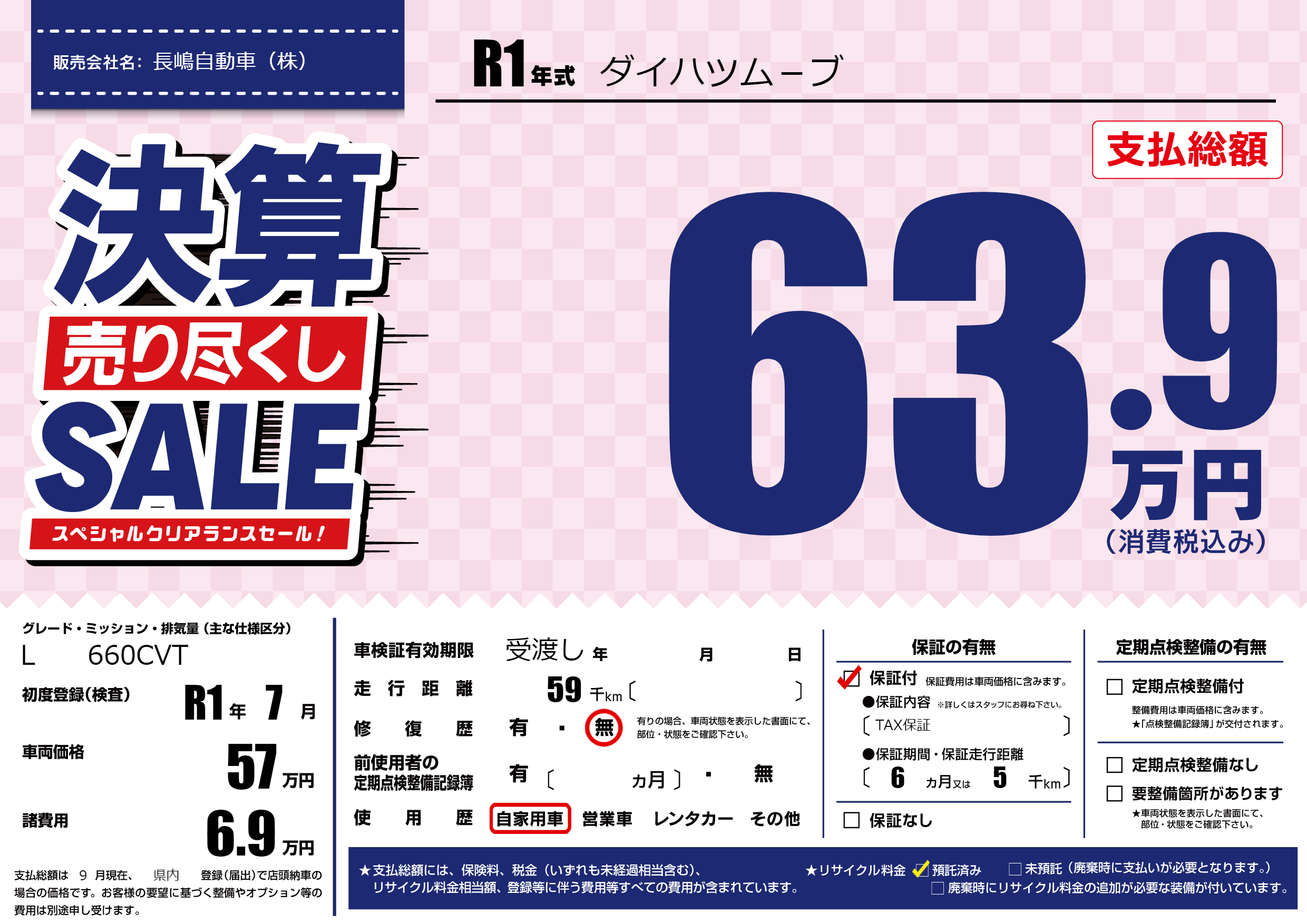 保証付き 保証内容(TAX保証) 6ヶ月または(5)千kmまで |