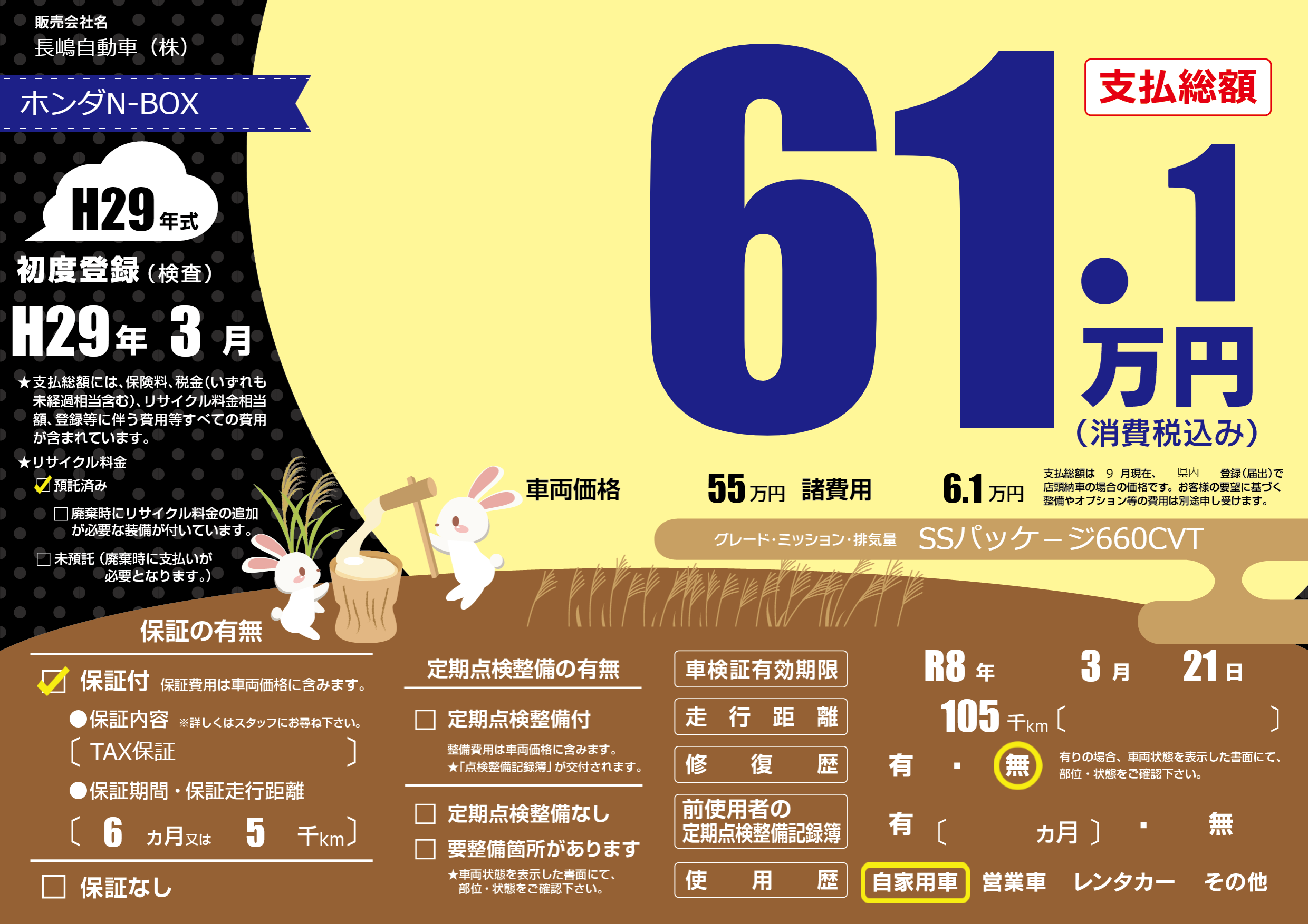 保証付き 保証内容(TAX保証) 6ヶ月または(5)千kmまで |