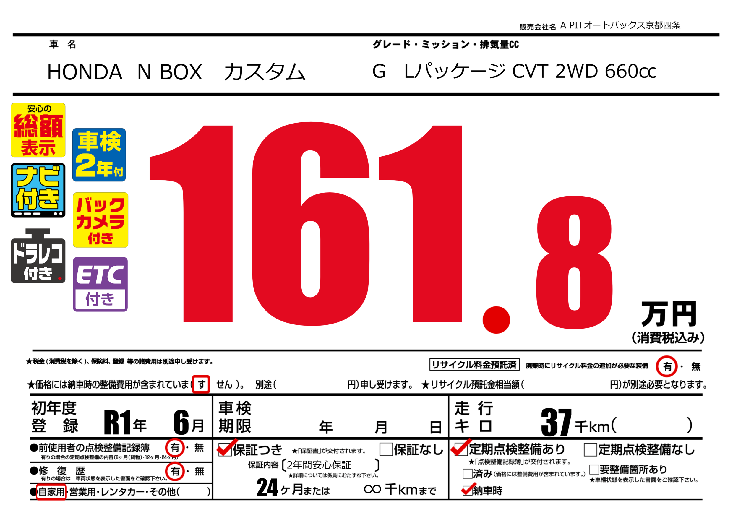 | 定期点検整備 | 定期点検整備あり 納車時あり | ||