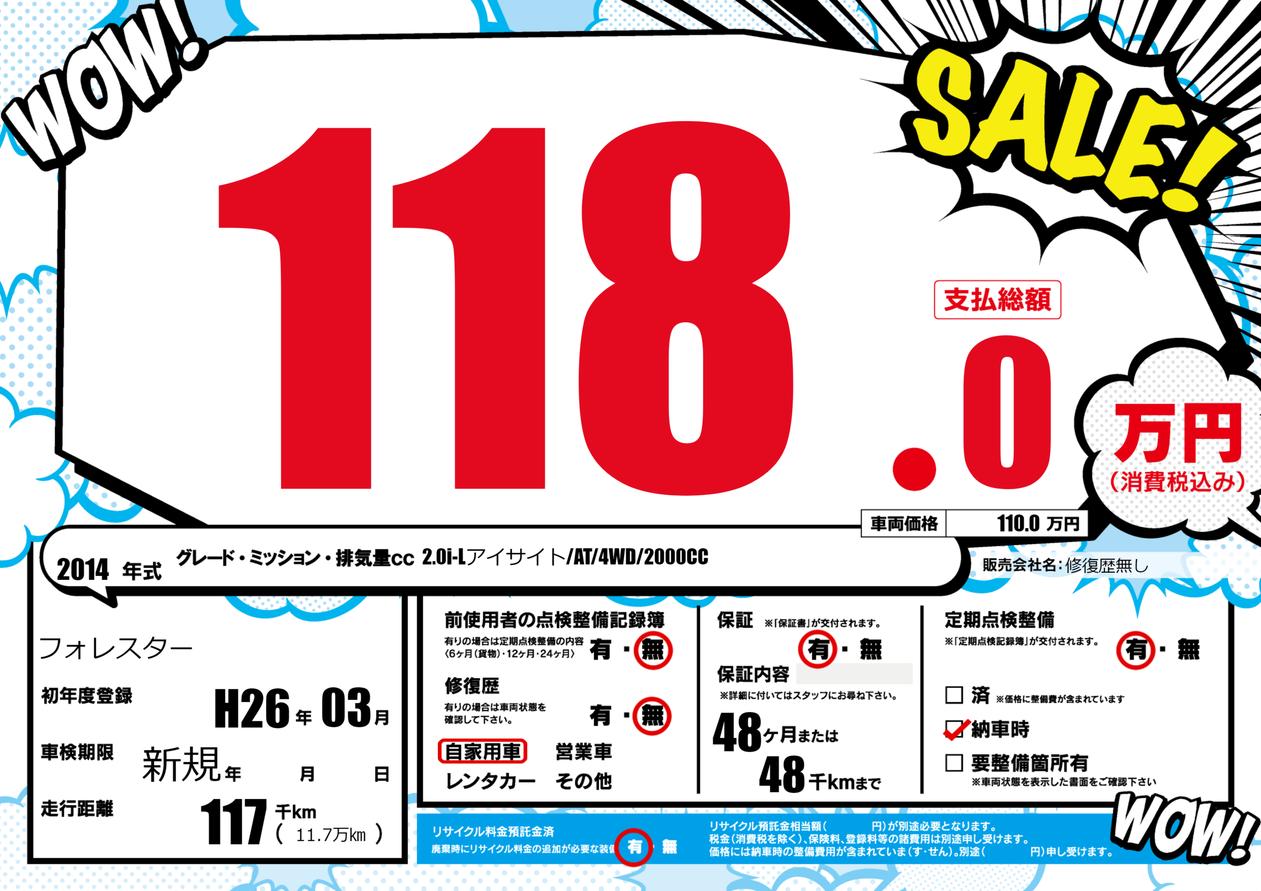 保証付き 保証内容(---) 48ヶ月または(48)千kmまで |