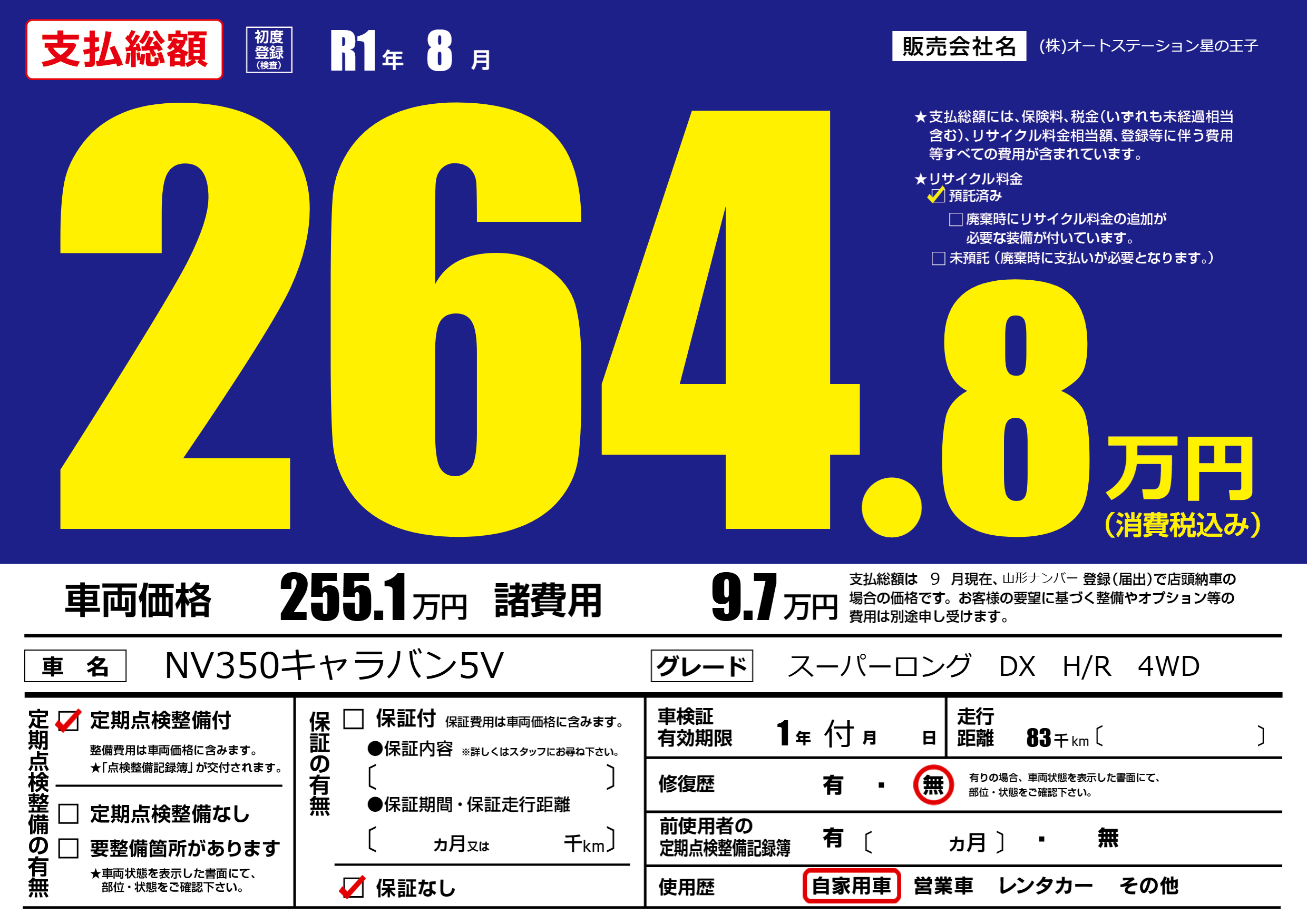 | 車名 | NV350キャラバン5V | グレード ミッション 排気量 |
