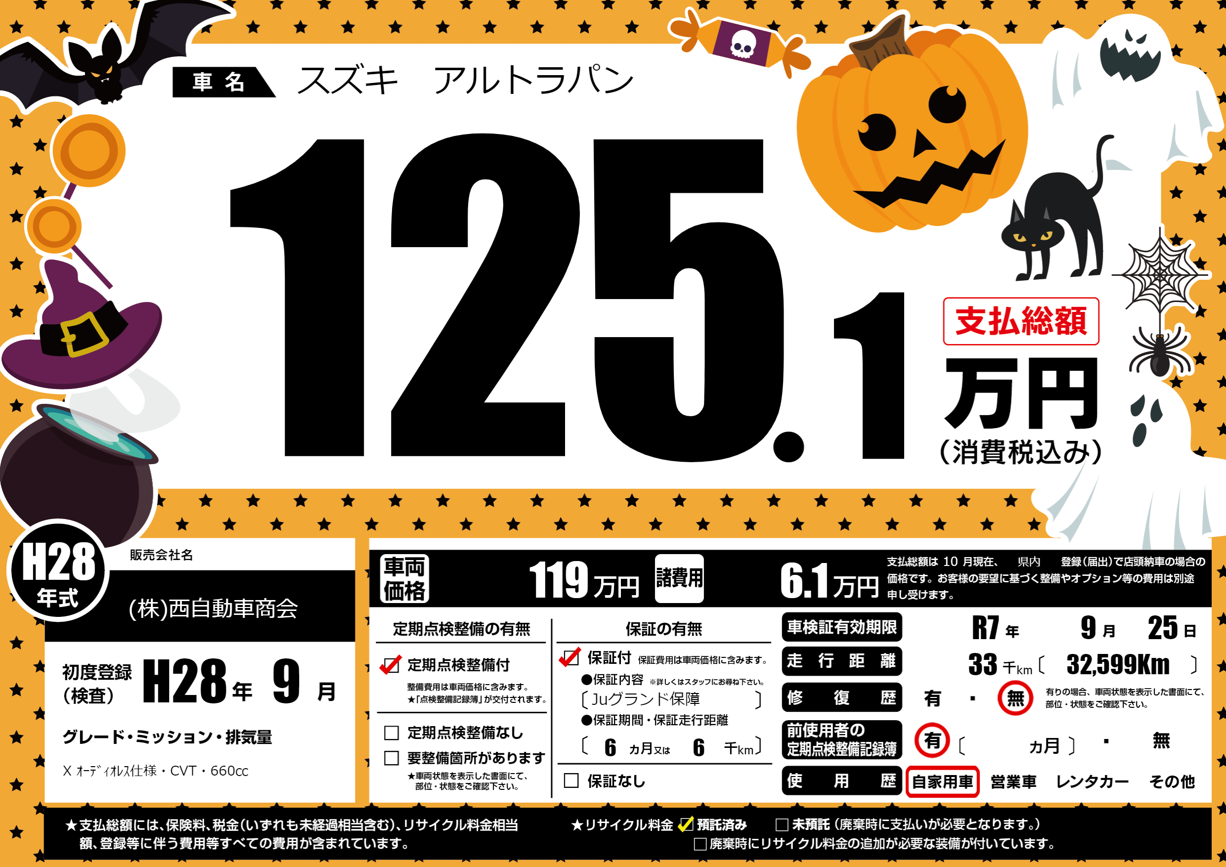 なし | 車検制限 | R7年9月25月 |