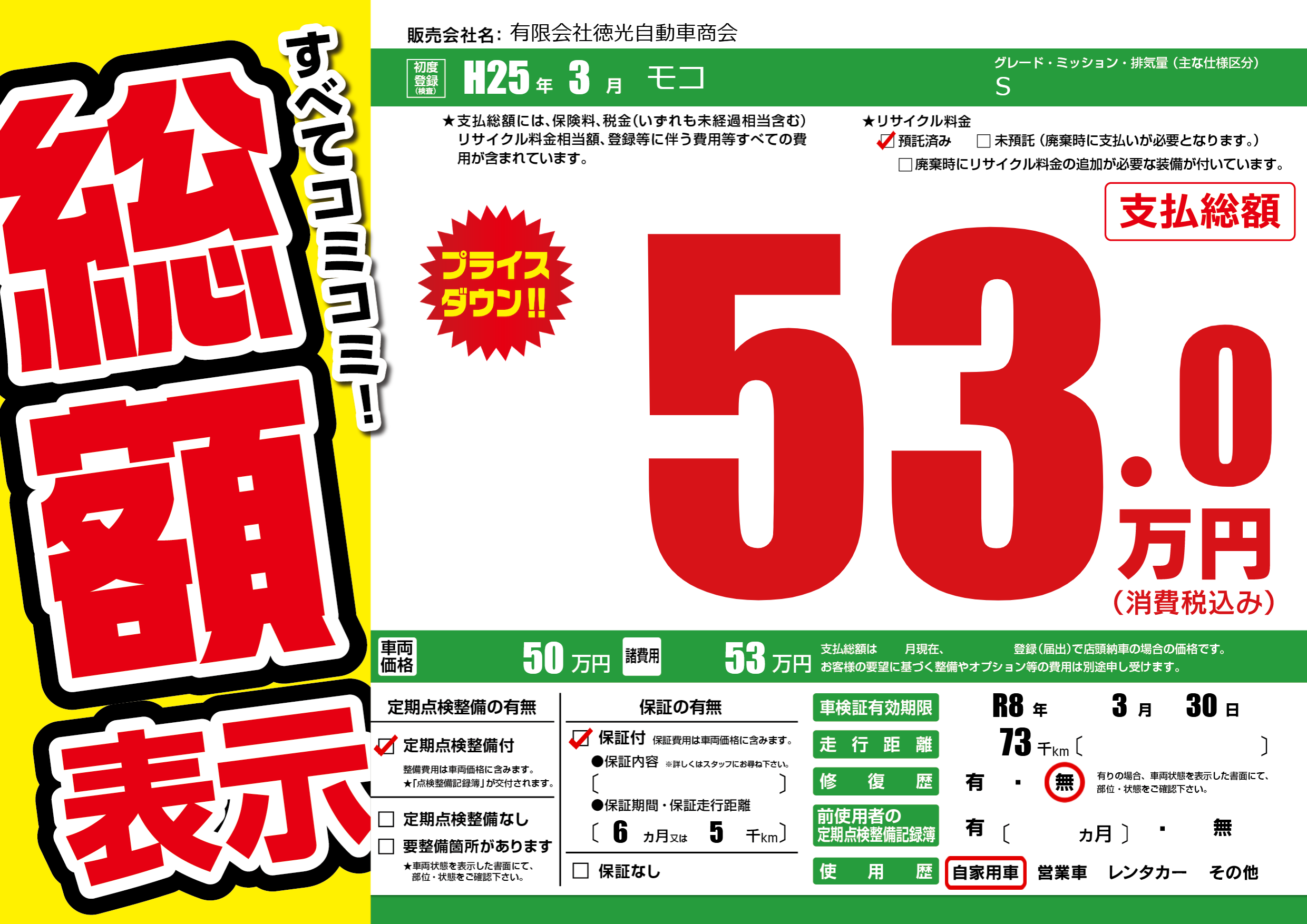 | 走行キロ | 7.3万km | 初年度登録 | H25年3月 |