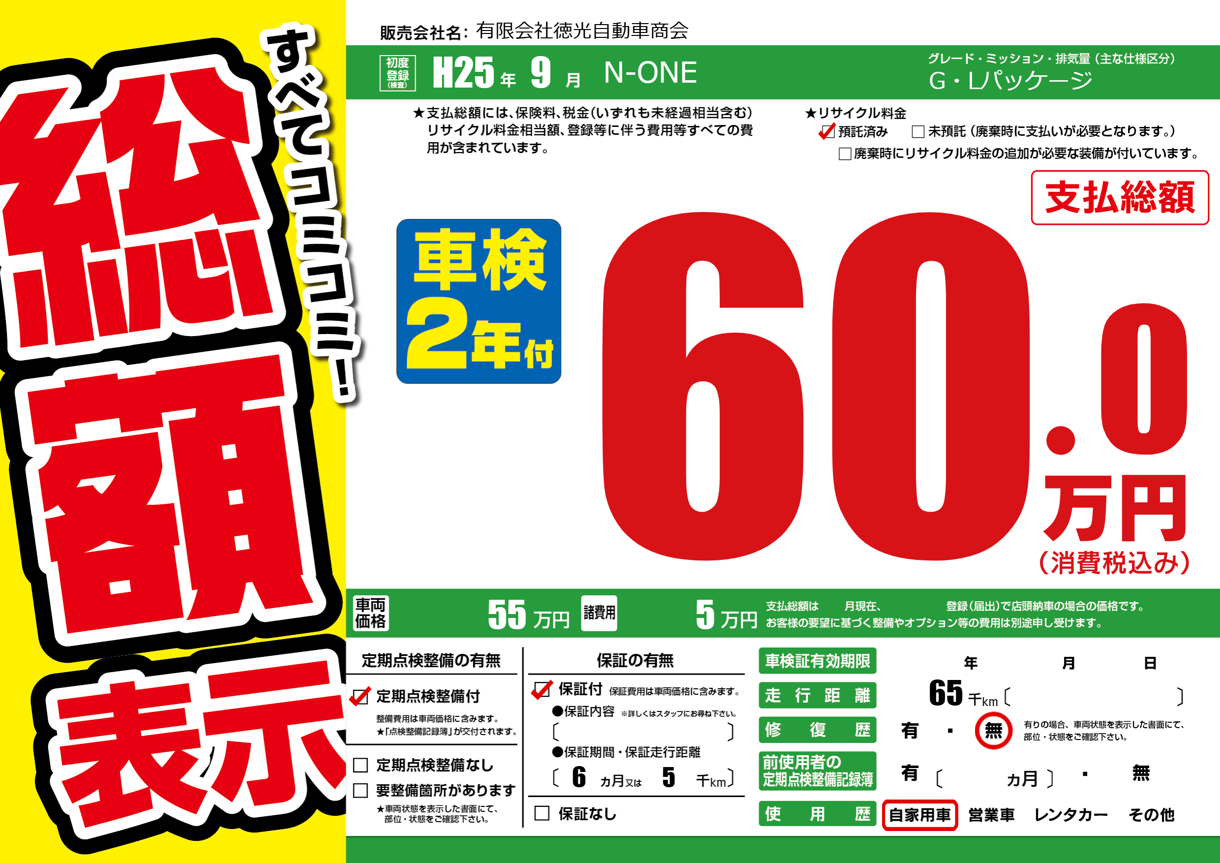 | 車名 | N-ONE | グレード ミッション 排気量 |