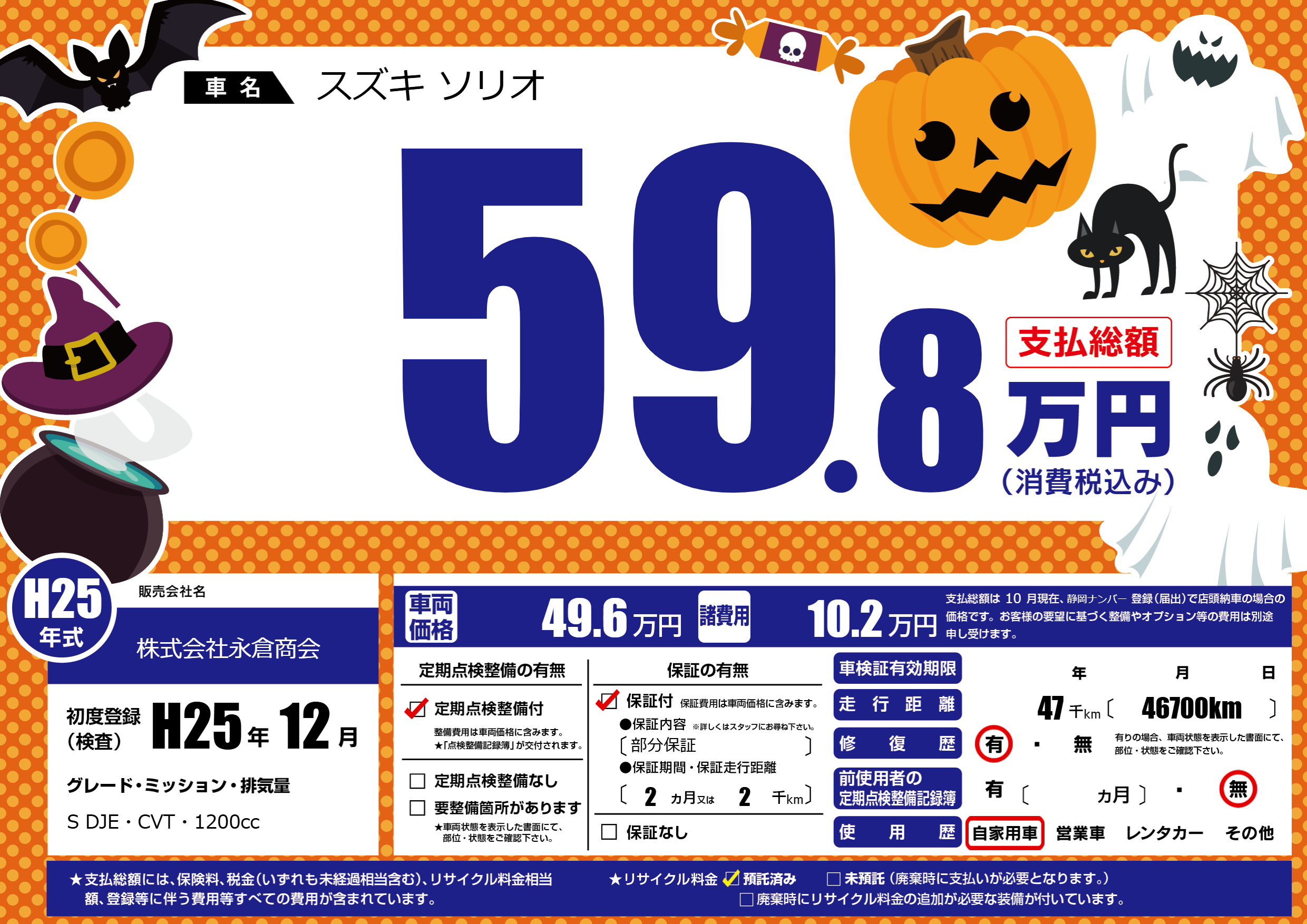 | 車名 | スズキ ソリオ | グレード ミッション 排気量 |
