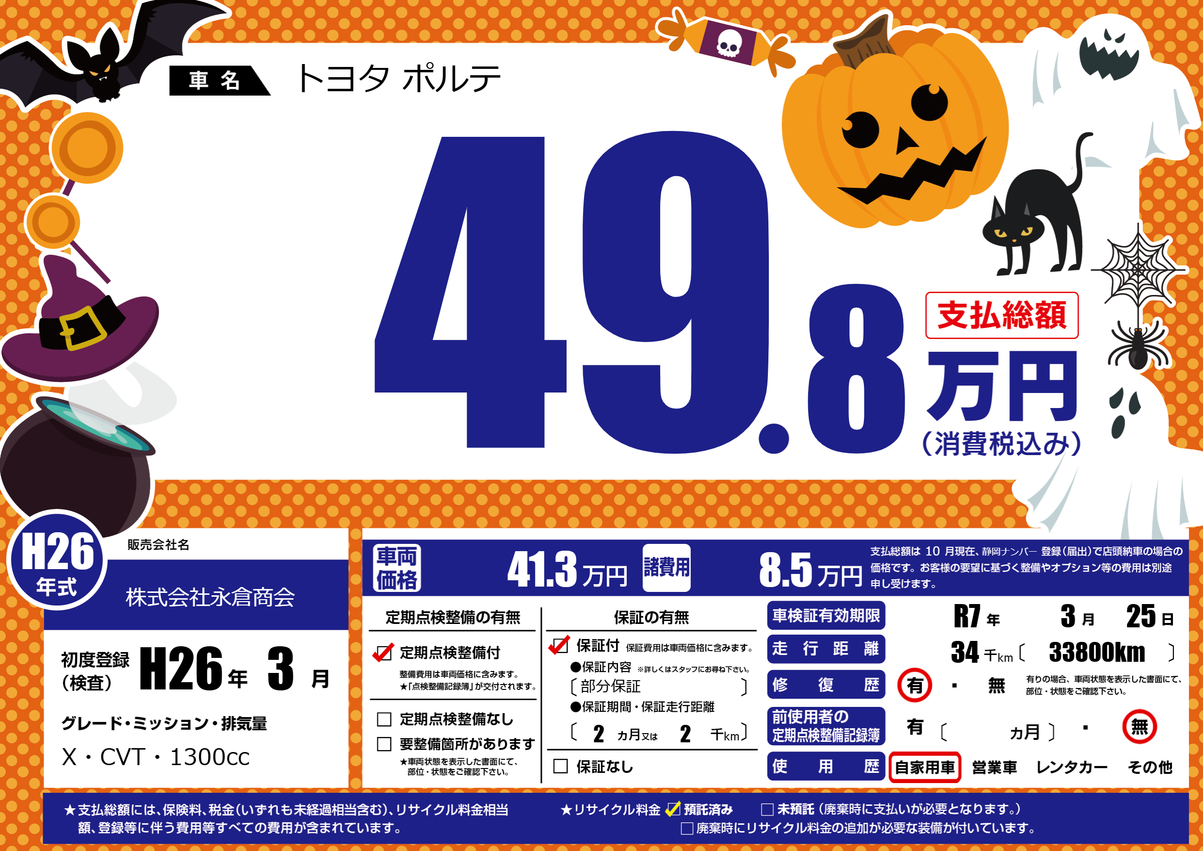なし | 車検制限 | R7年3月25月 |