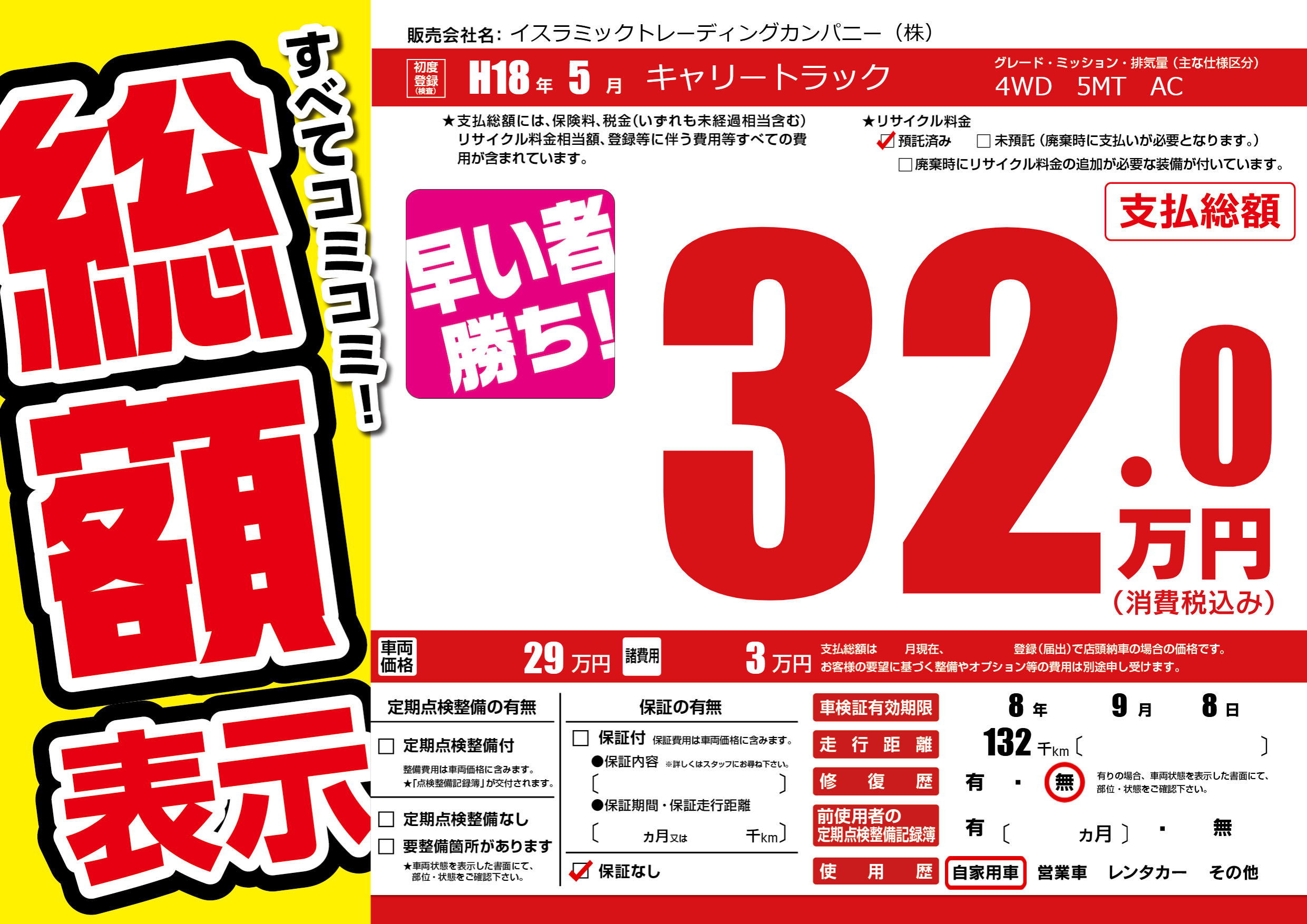 | 車検制限 | 8年 9月 8日 | ||