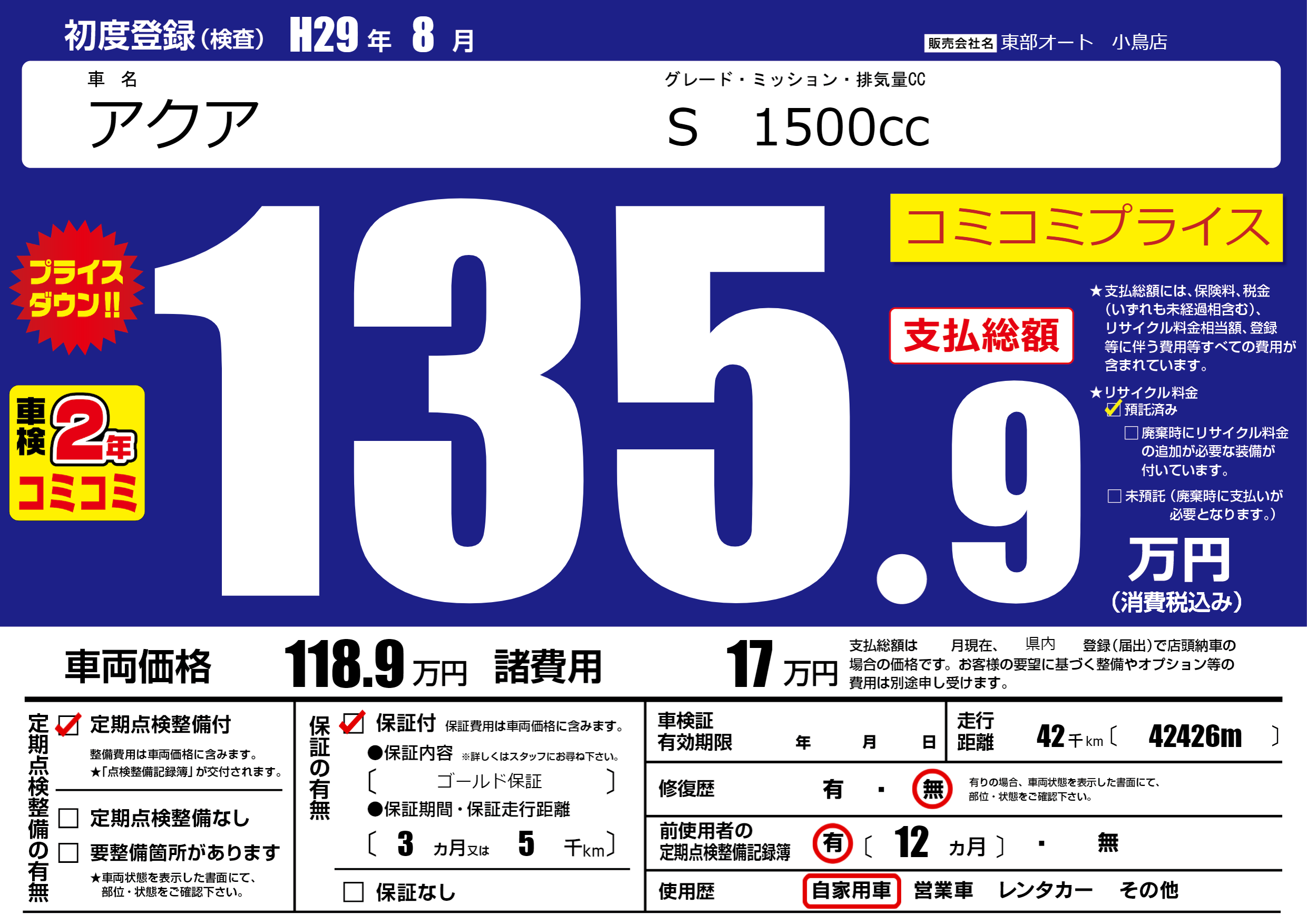 | 初年度登録 | H29年8月 | ||