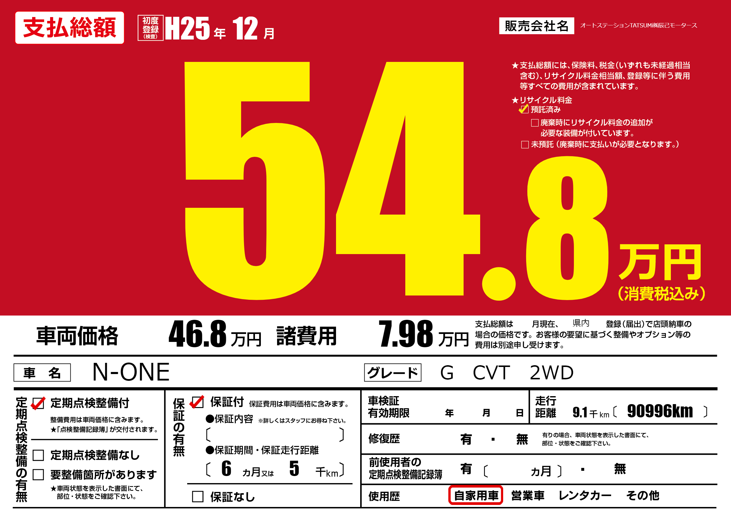 保証付き 保証内容(---) 6ヶ月または(5)千kmまで |