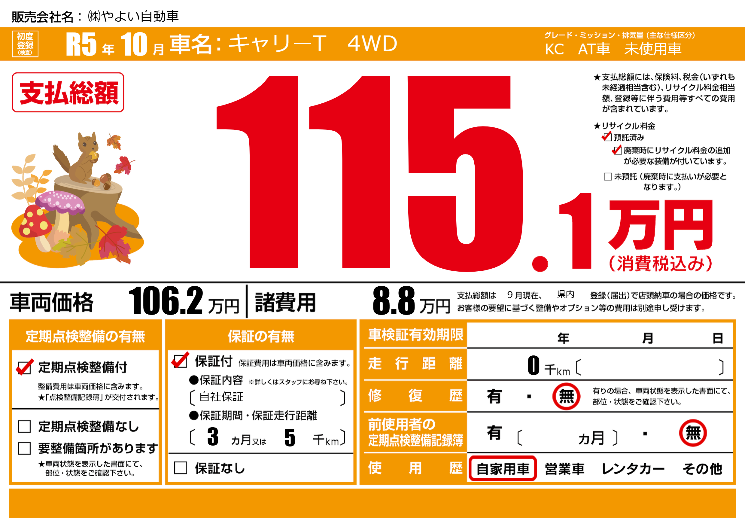 | 走行キロ | - | 初年度登録 | R5年10月 |