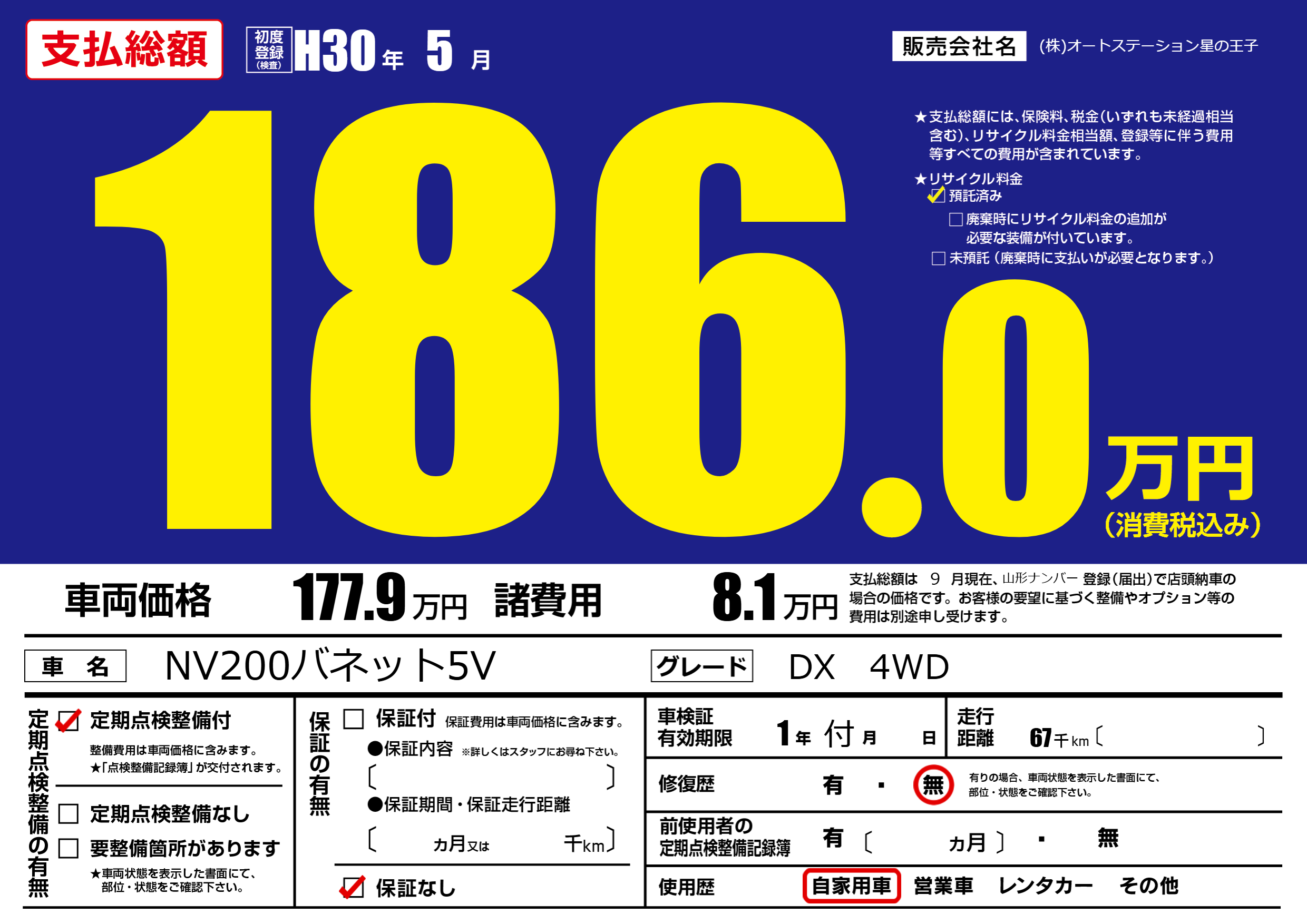 | 車名 | NV200バネット5V | グレード ミッション 排気量 |