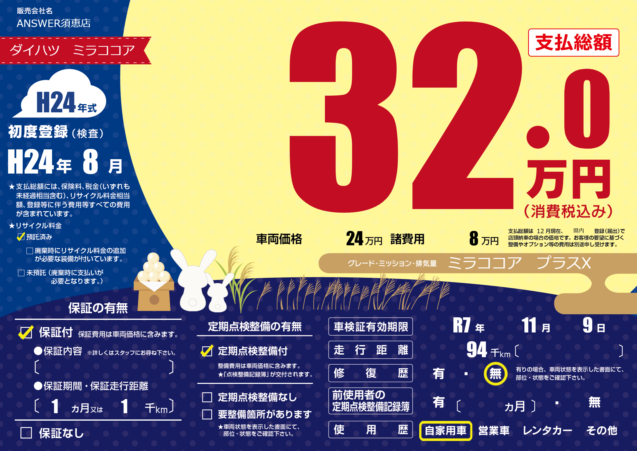 なし | 車検制限 | R7年11月9月 |