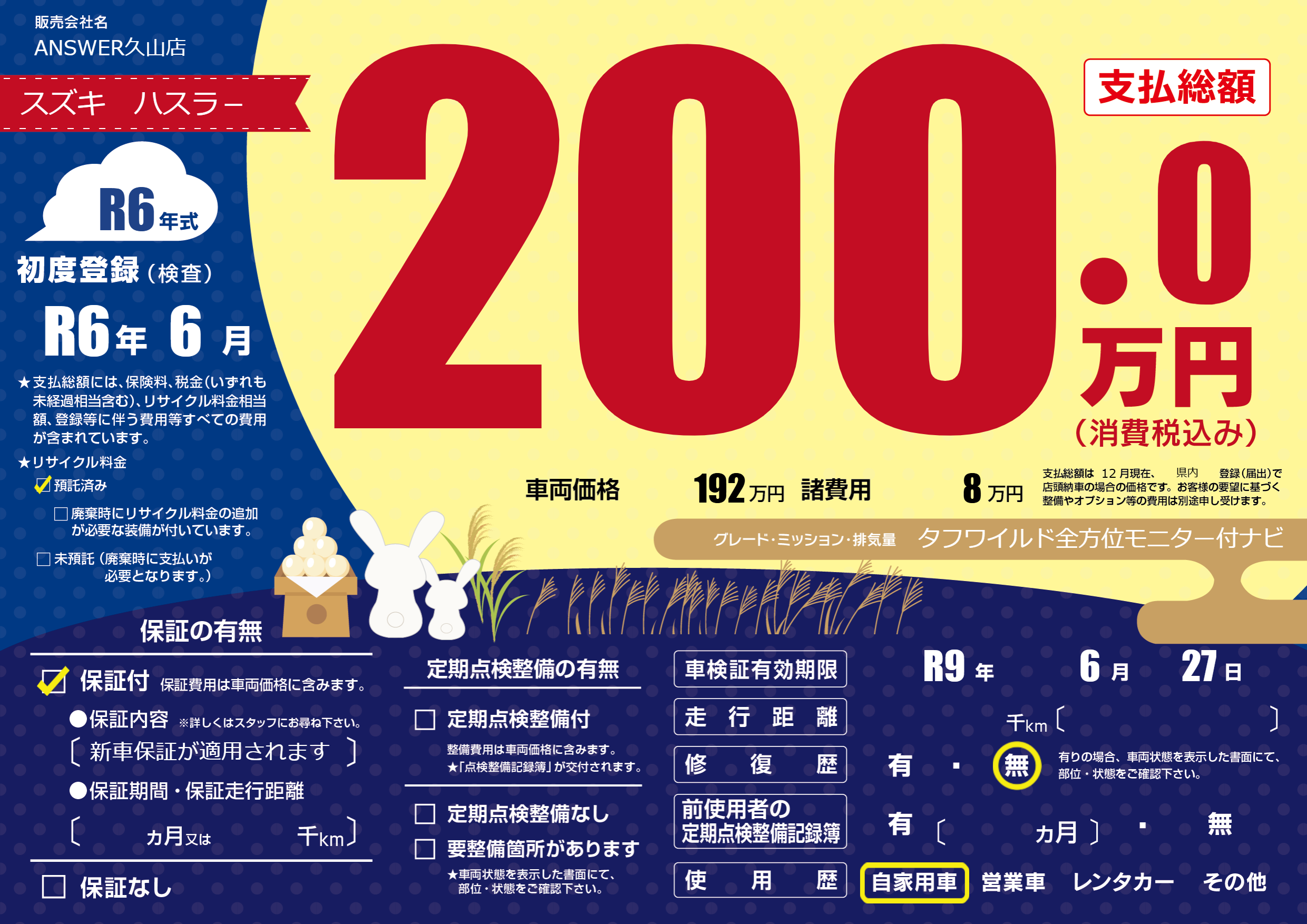 | 走行キロ | - | 初年度登録 | R6年6月 |
