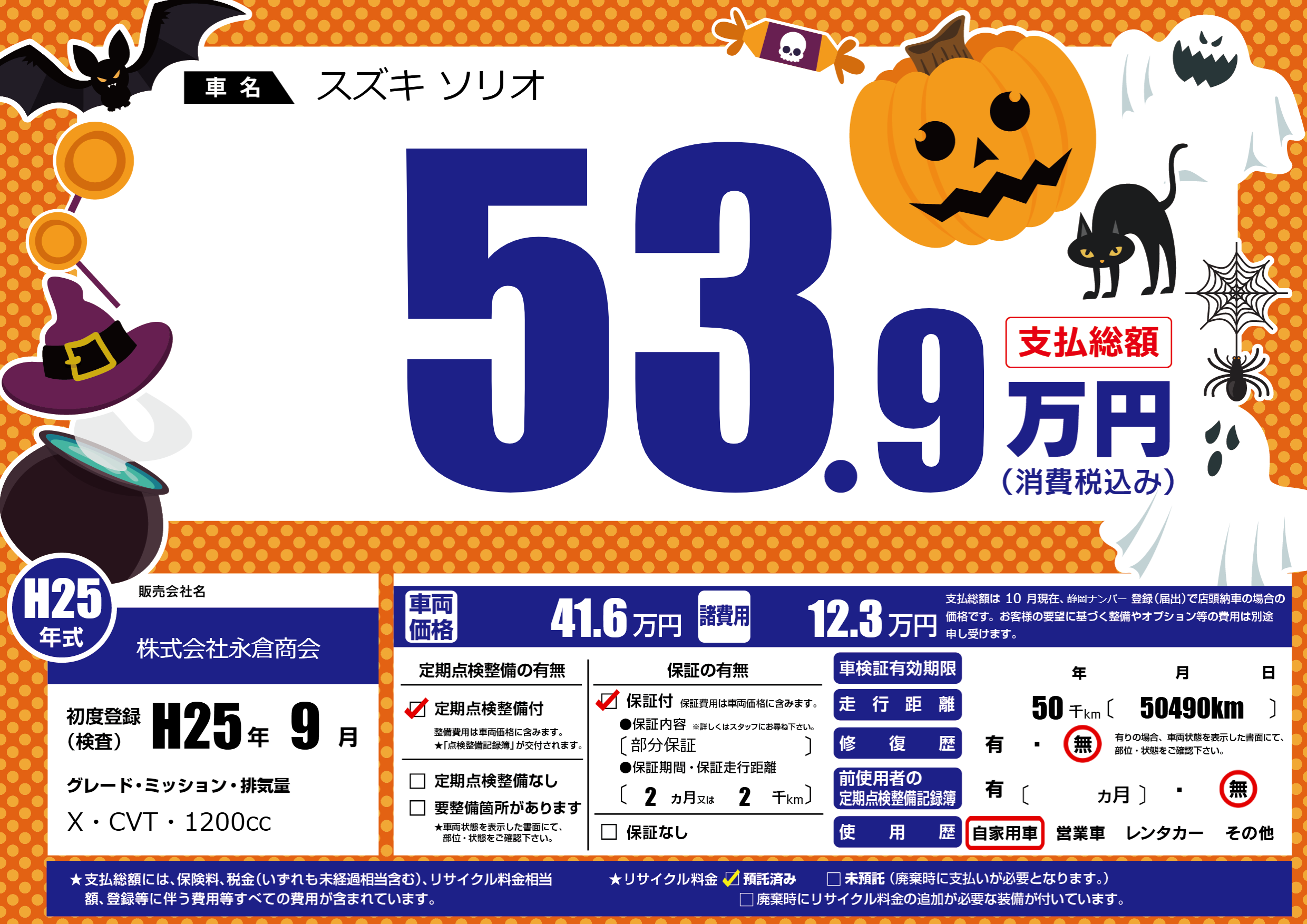 | 走行キロ | 5万km | 初年度登録 | H25年9月 |