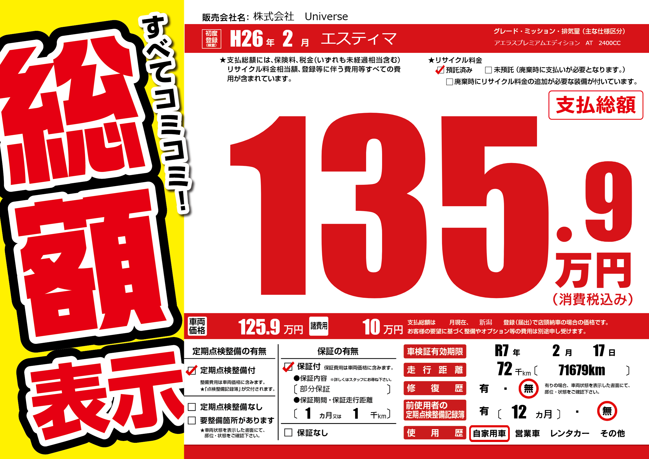 | 初年度登録 | H26年2月 | ||
