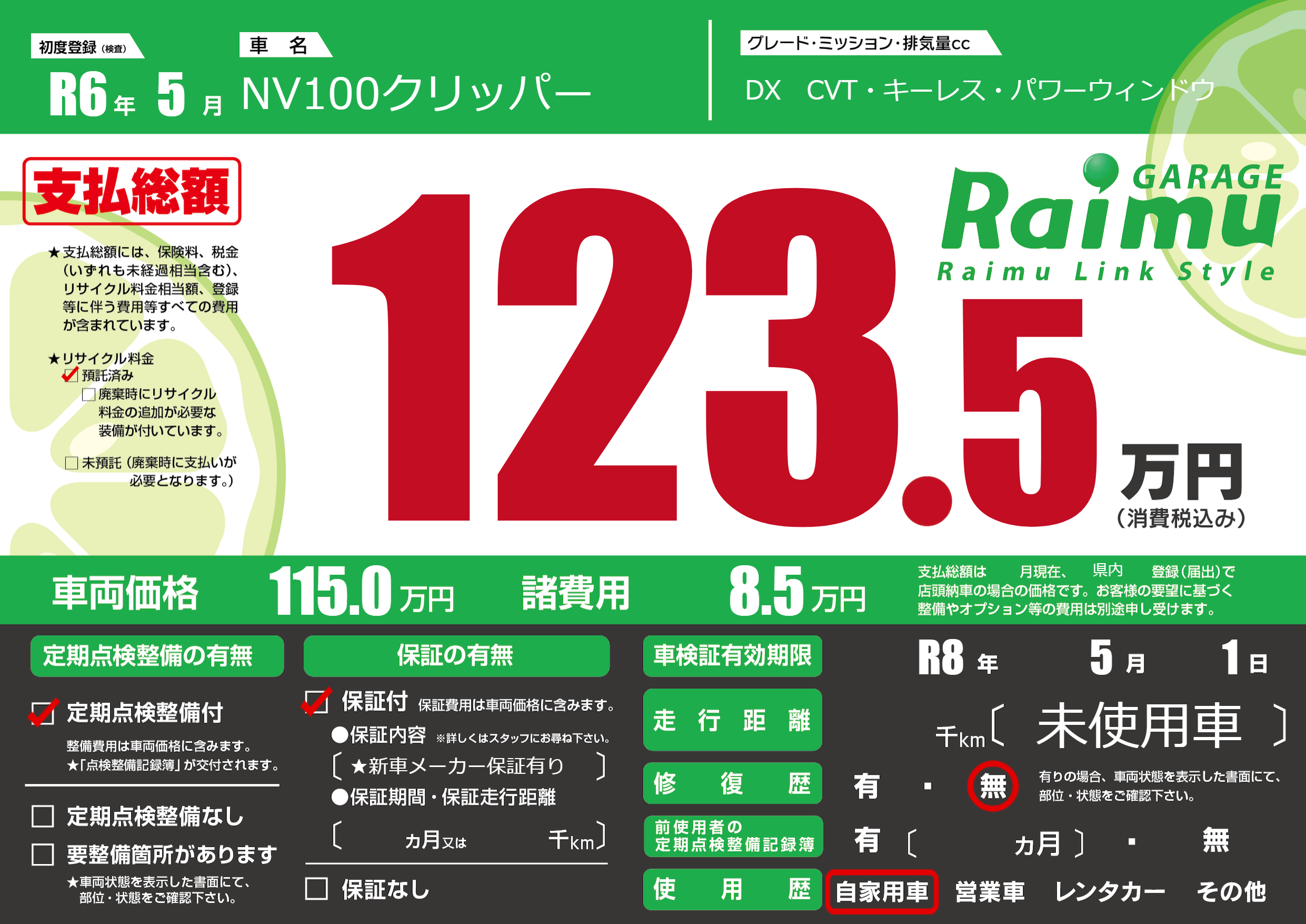 | 走行キロ | - | 初年度登録 | R6年5月 |