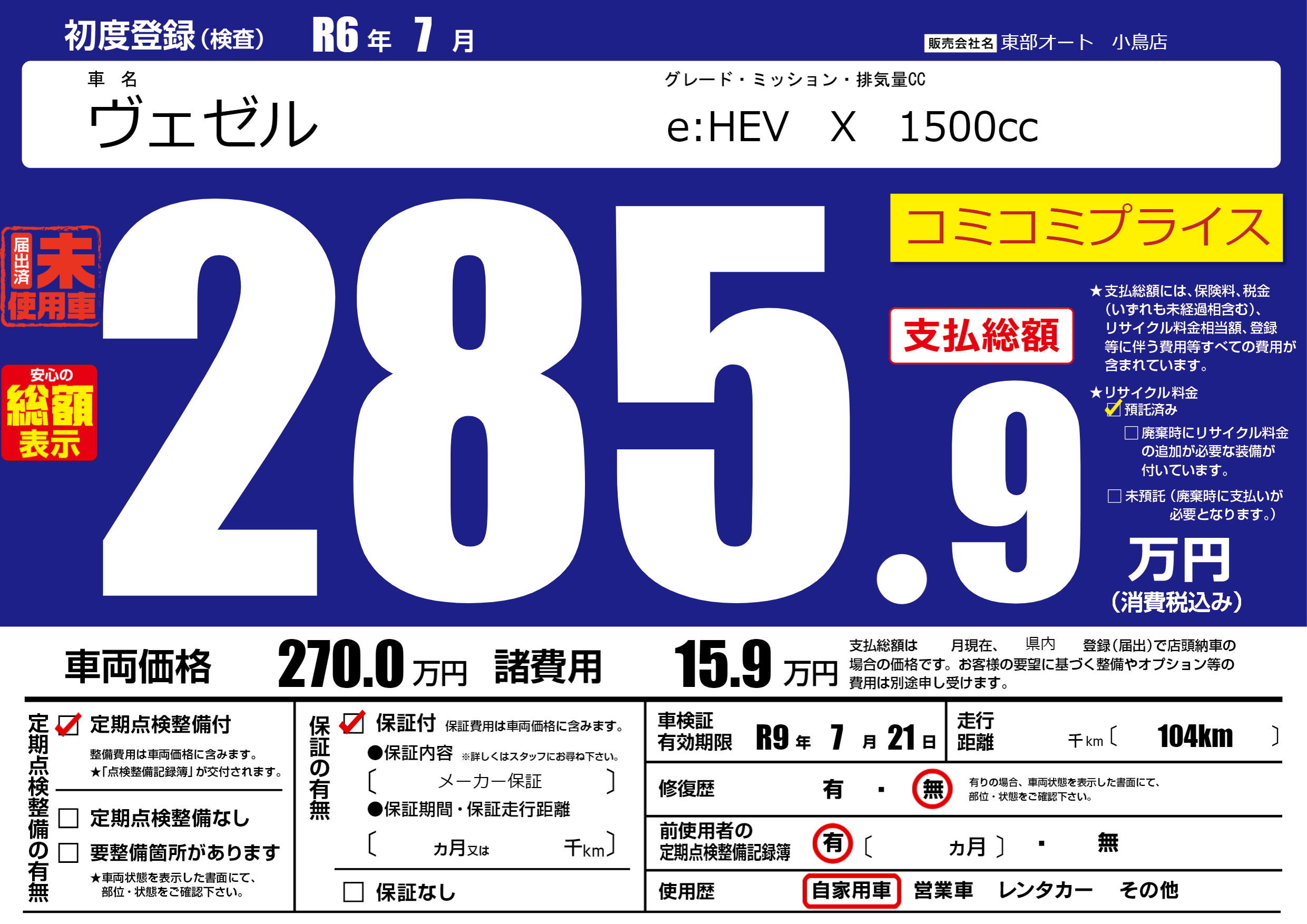 | 車名 | ヴェゼル | グレード ミッション 排気量 |