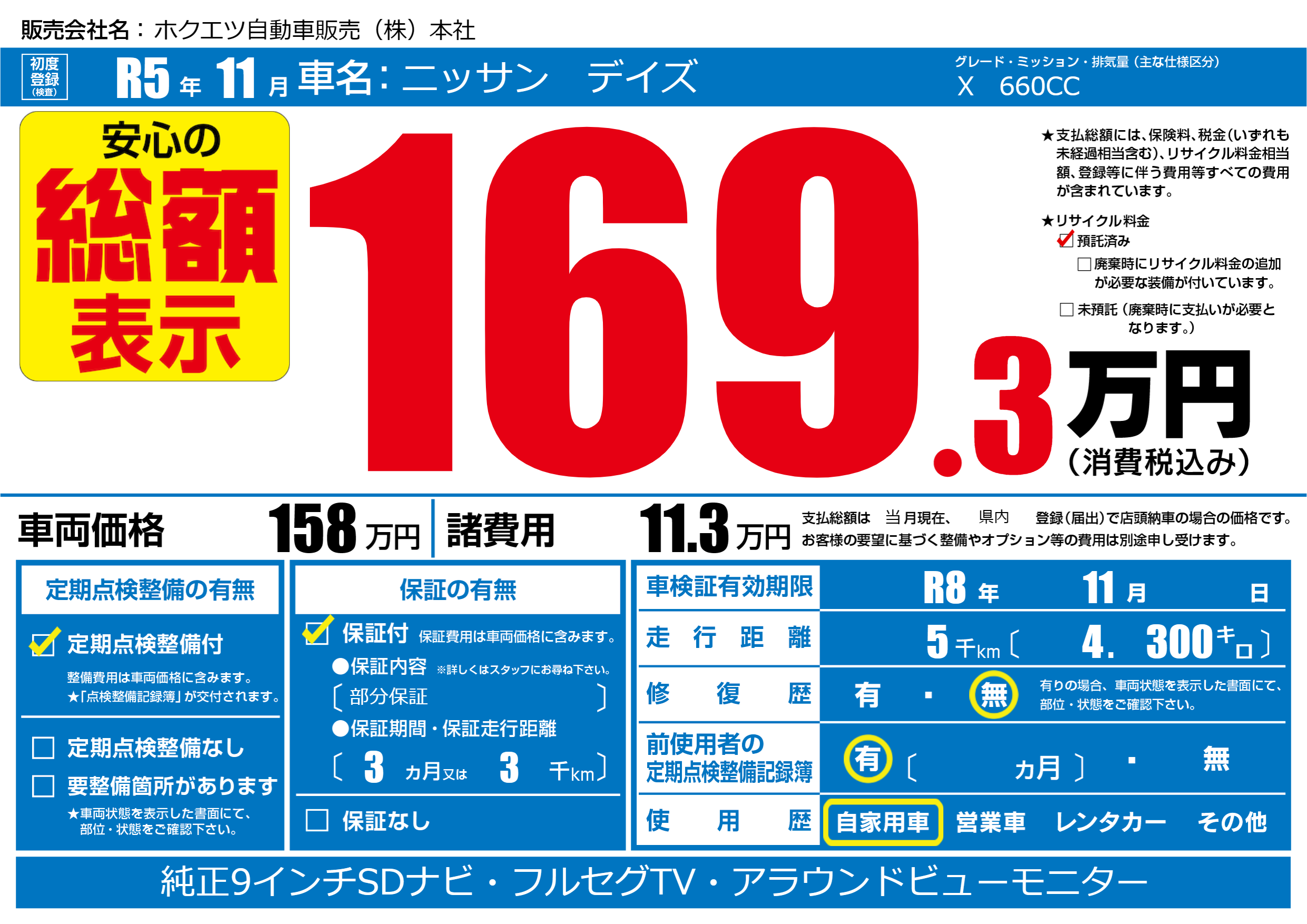 なし | 車検制限 | R8年11月---月 |