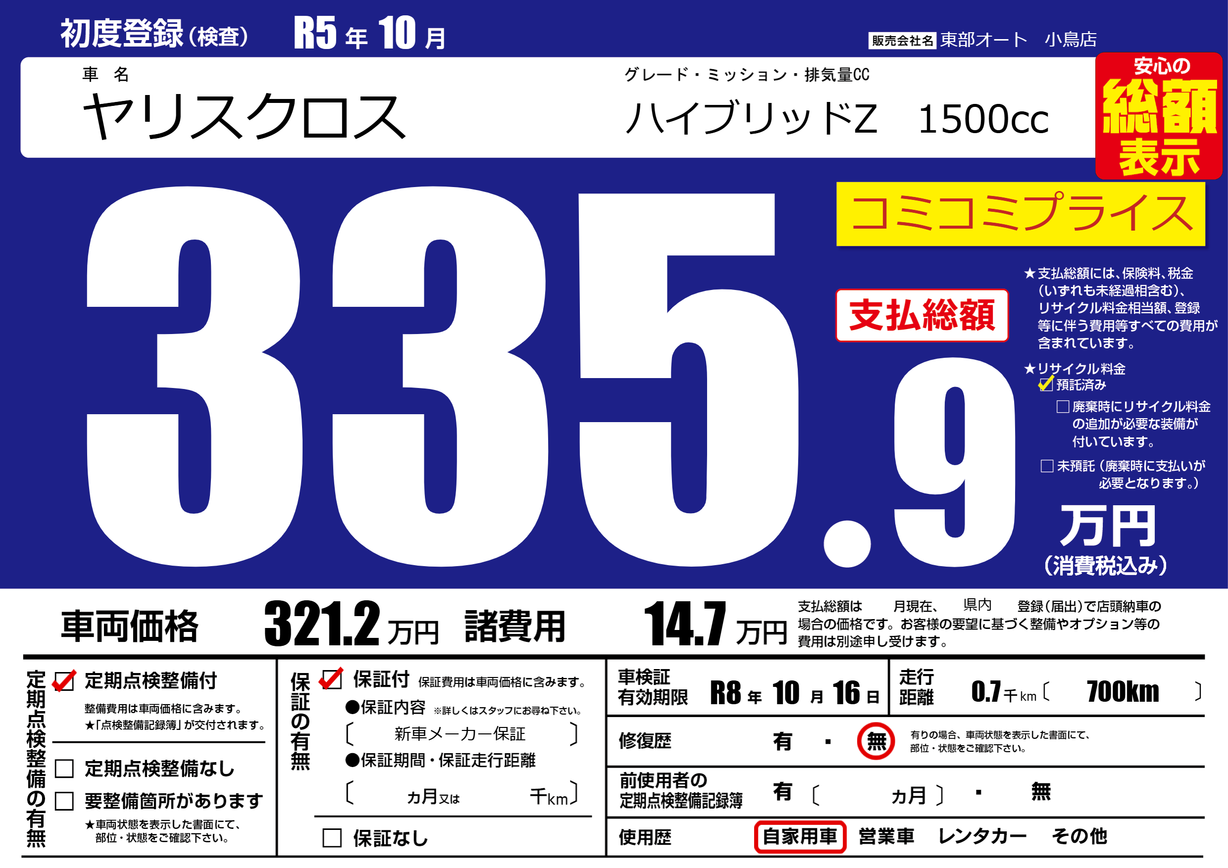 | 定期点検整備 | 定期点検整備あり | ||