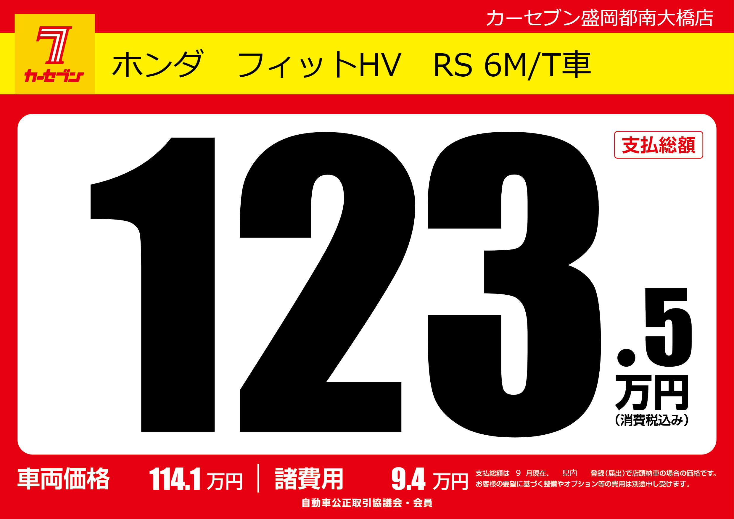 | 車名 | ホンダ フィットHV RS 6M/T車 | グレード ミッション 排気量 |