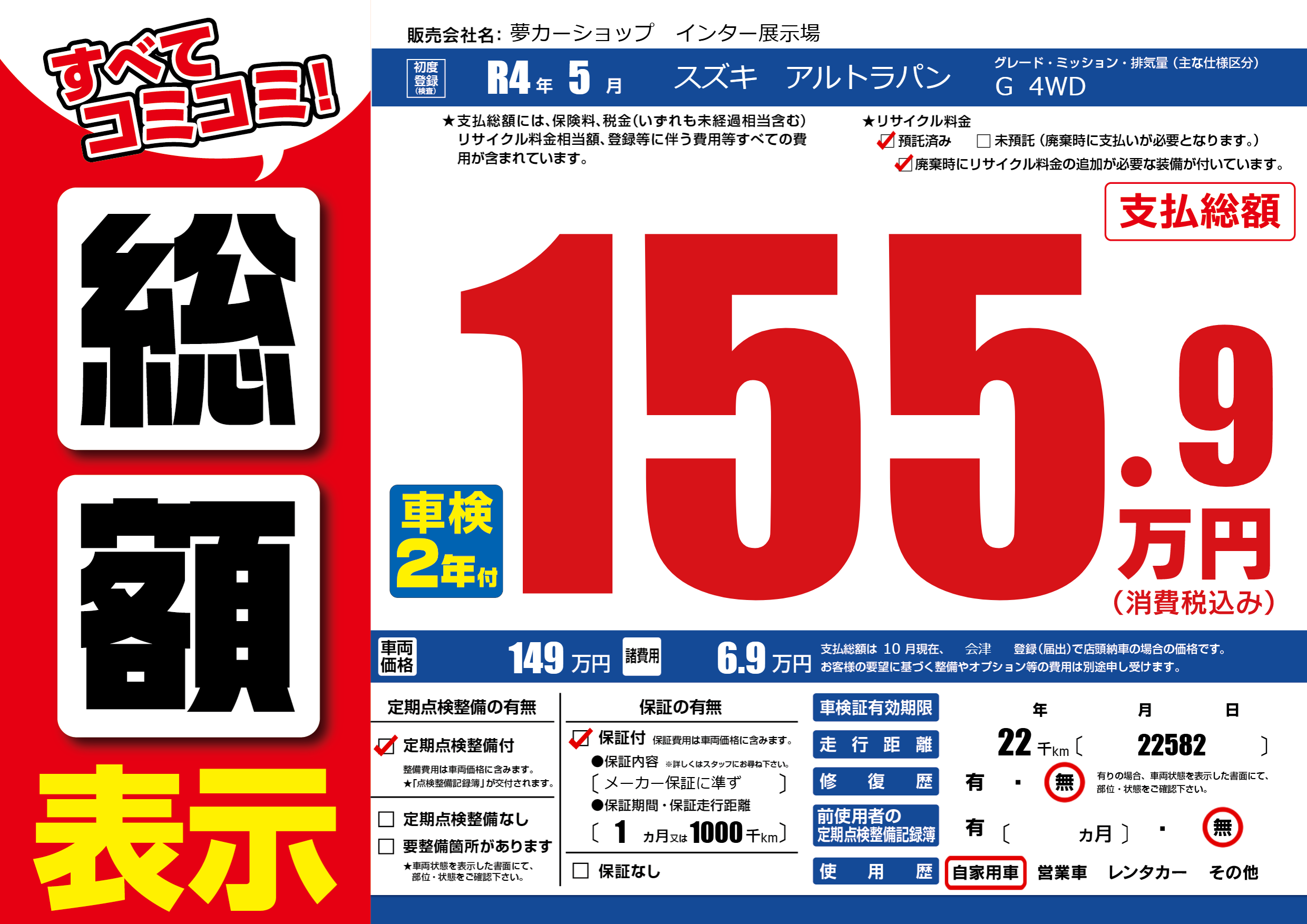 保証付き 保証内容(メーカー保証に準ず) 1ヶ月または(1000)千kmまで |