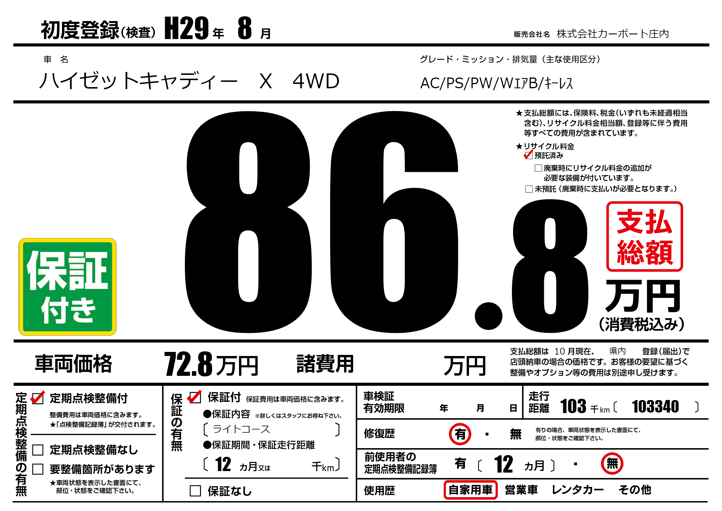 | 定期点検整備 | 定期点検整備あり | ||