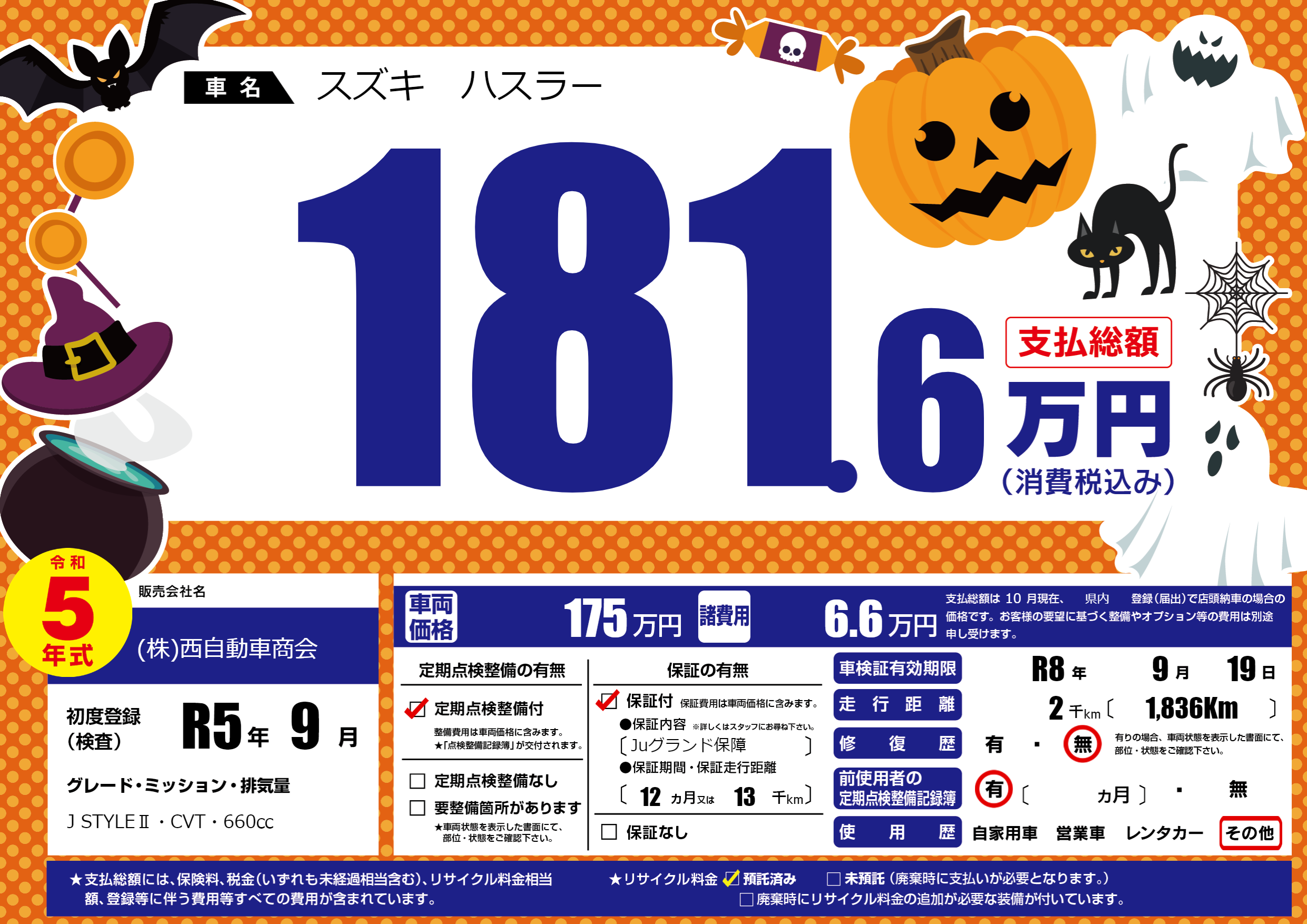 | 走行キロ | 0.2万km | 初年度登録 | R5年9月 |