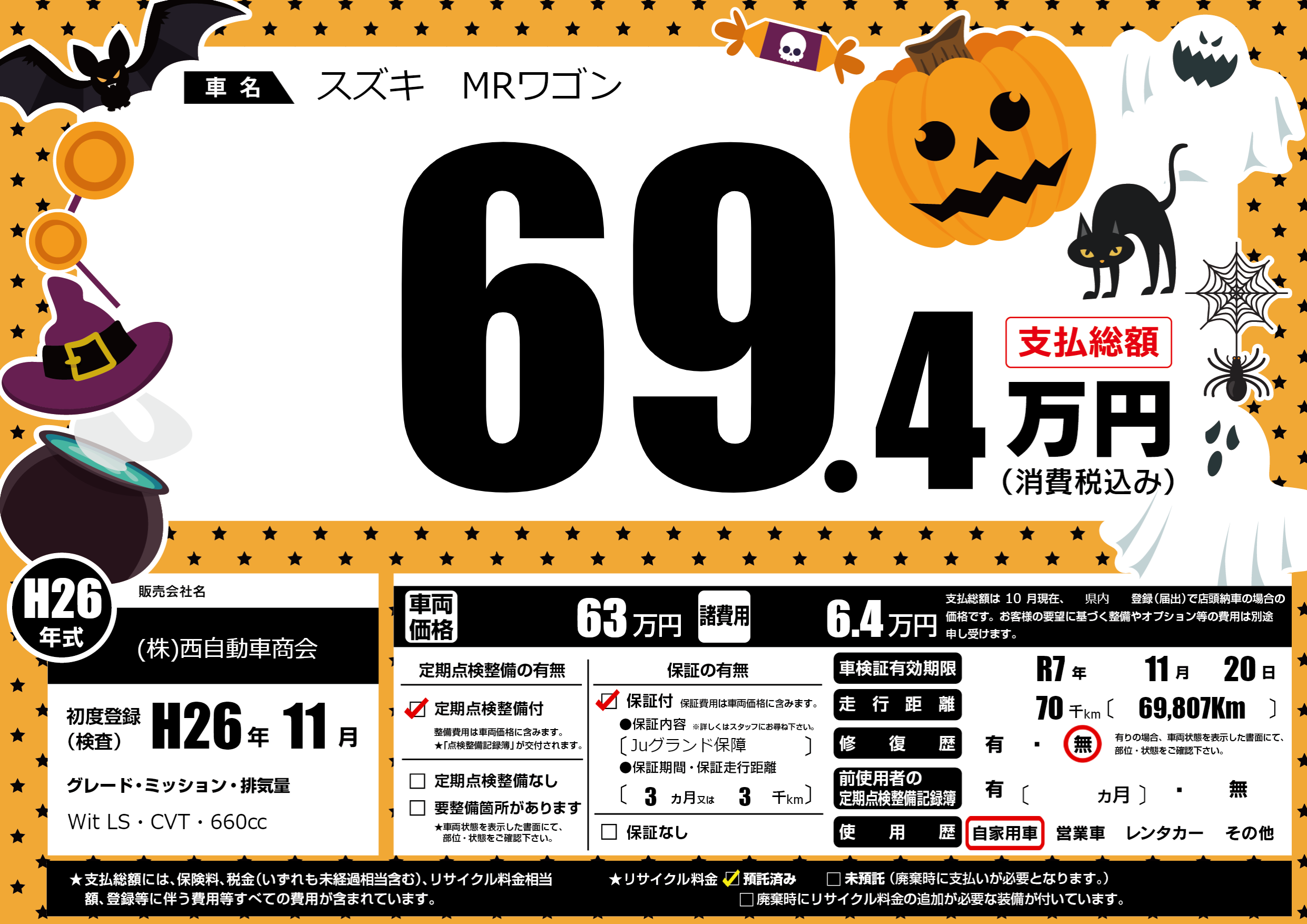 | 車検制限 | R7年 11月 20日 | ||
