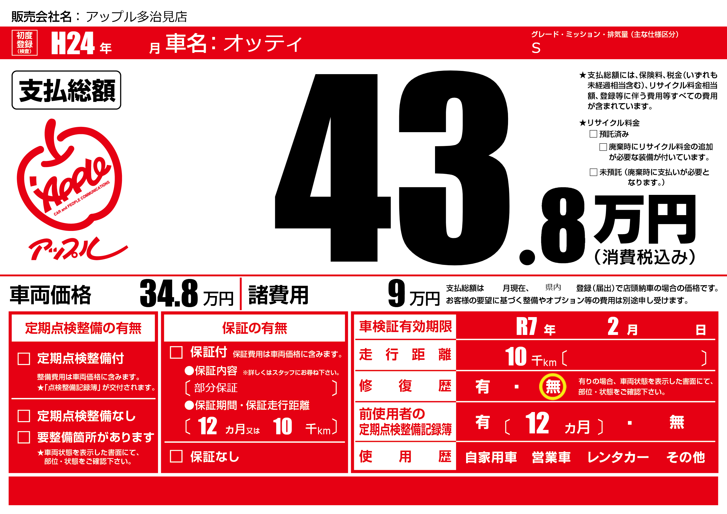 | 車名 | オッティ | グレード ミッション 排気量 |