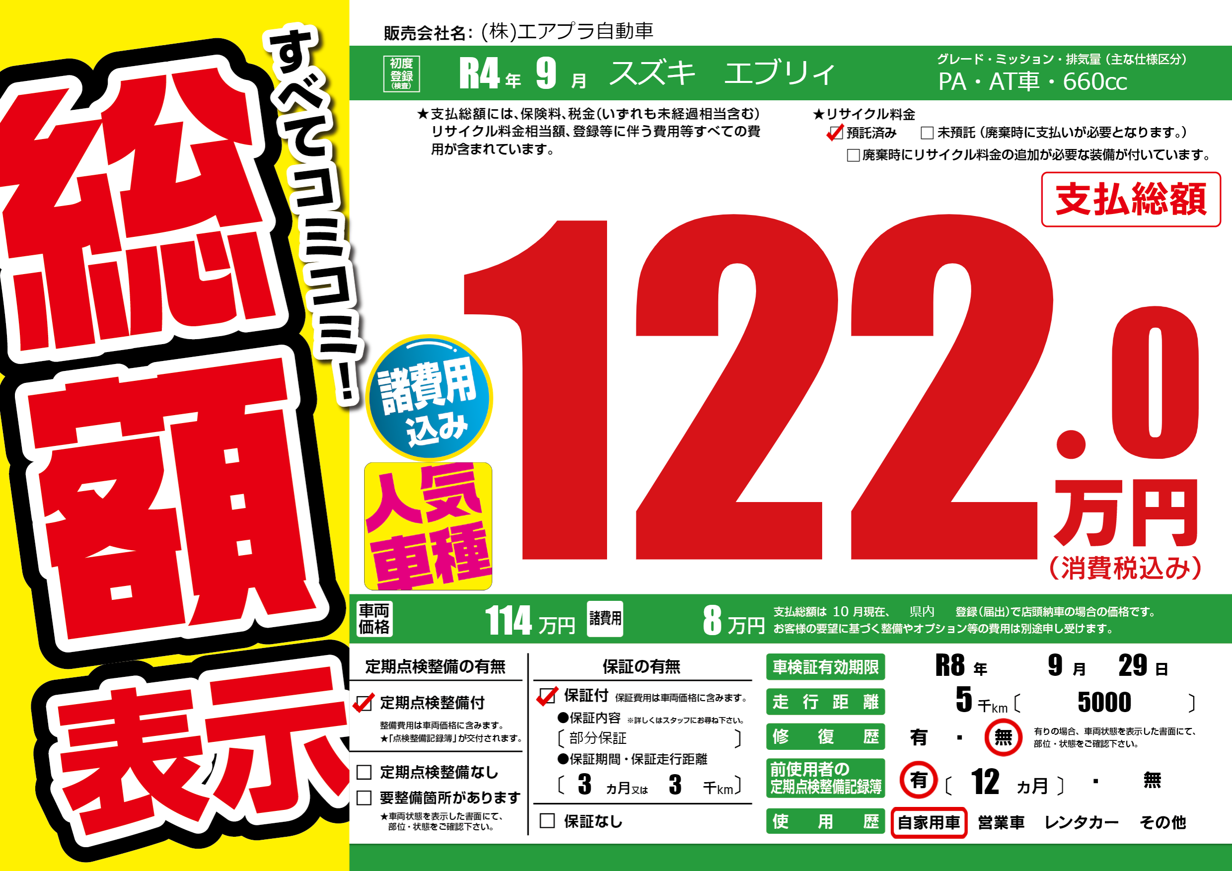 | 車名 | スズキ エブリィ | グレード ミッション 排気量 |