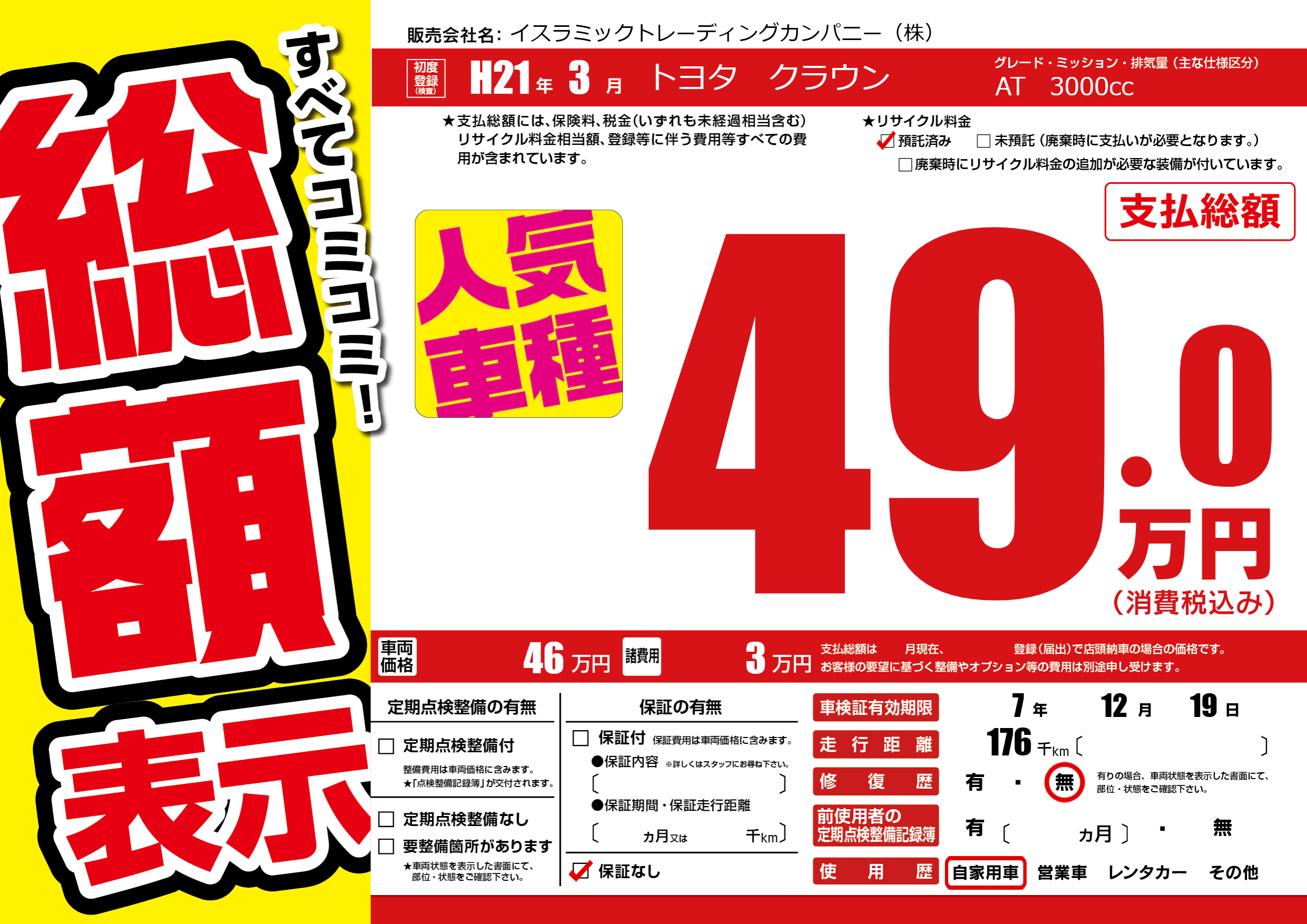 | 車名 | トヨタ クラウン | グレード ミッション 排気量 |