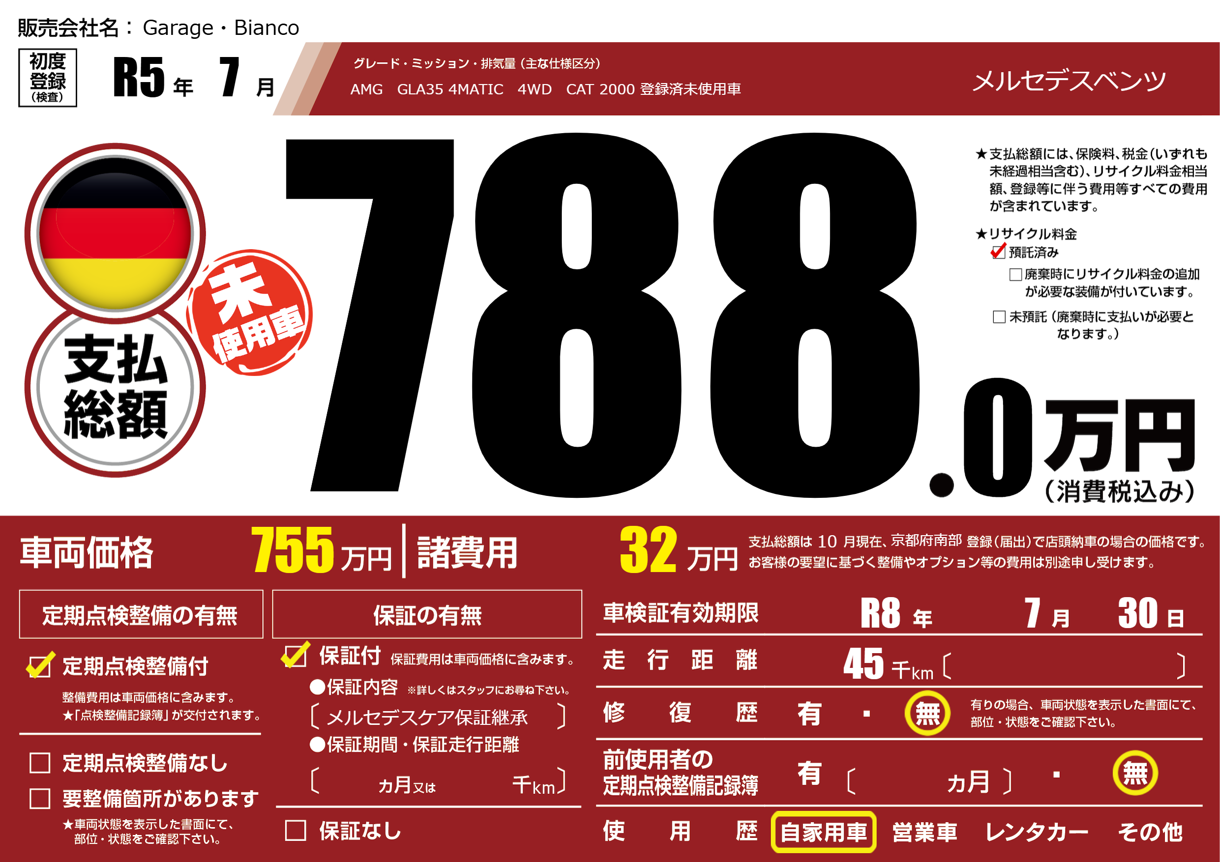 なし | 車検制限 | R8年7月30月 |