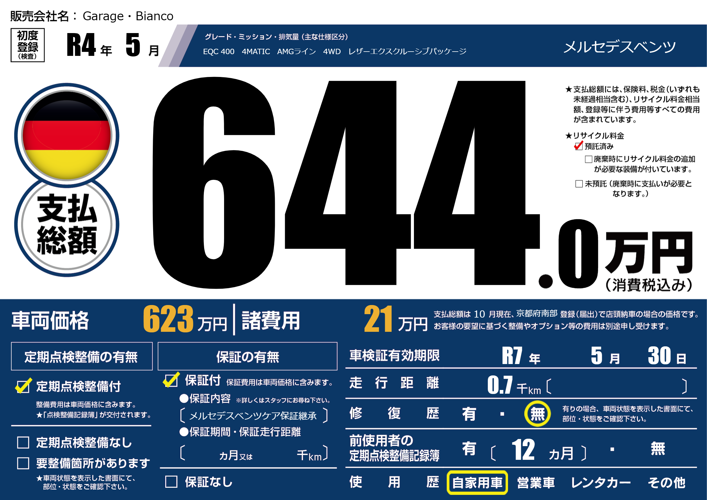 EQC 400 4MATIC AMGライン 4WD レザーエクスクルーシブパッケージ |