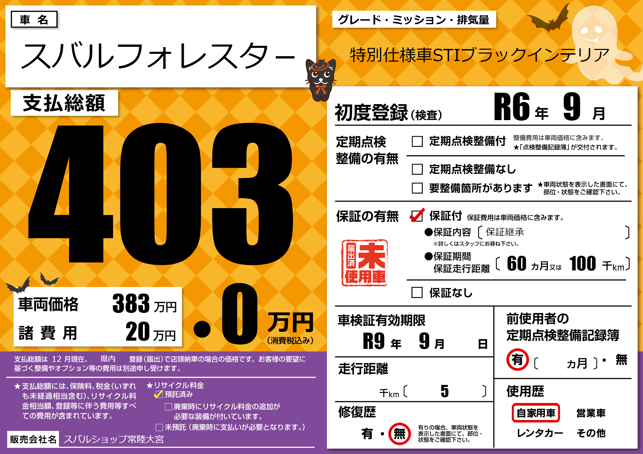 | 走行キロ | - | 初年度登録 | R6年9月 |