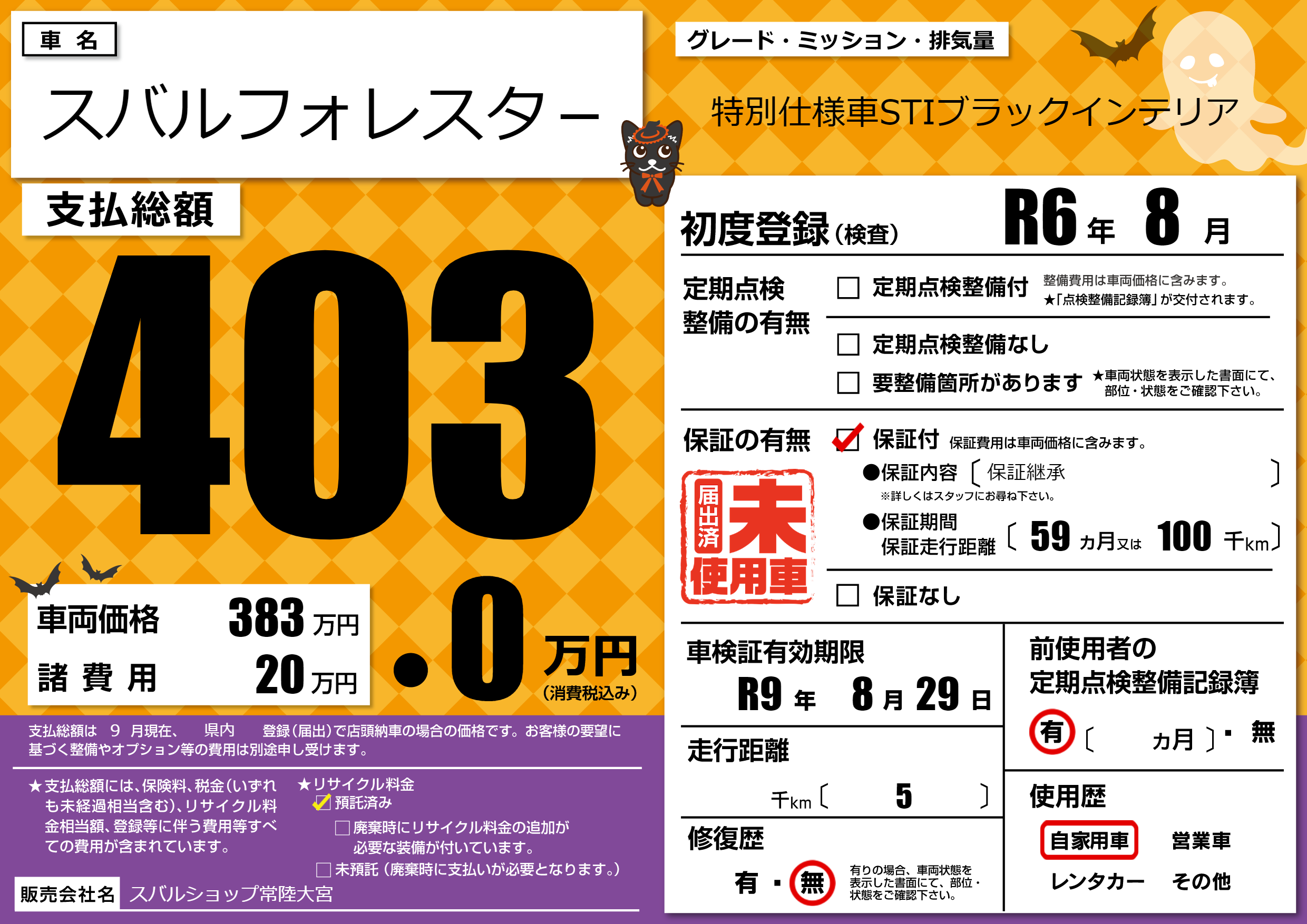 | 走行キロ | - | 初年度登録 | R6年8月 |
