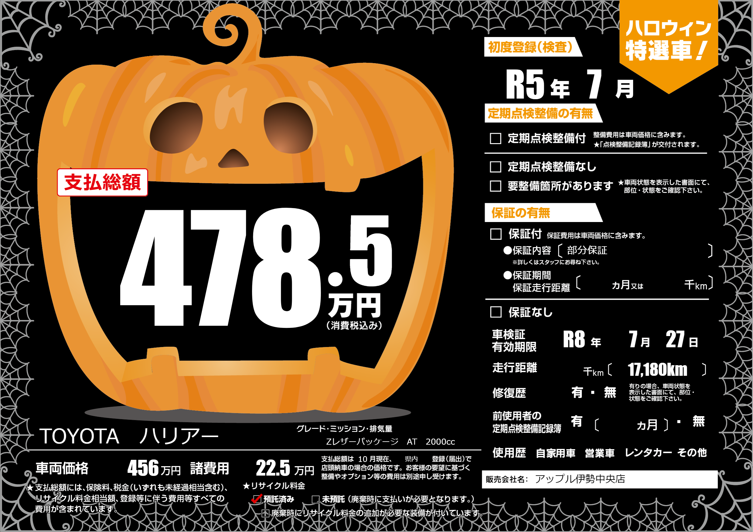 | 車名 | TOYOTA ハリアー | グレード ミッション 排気量 |