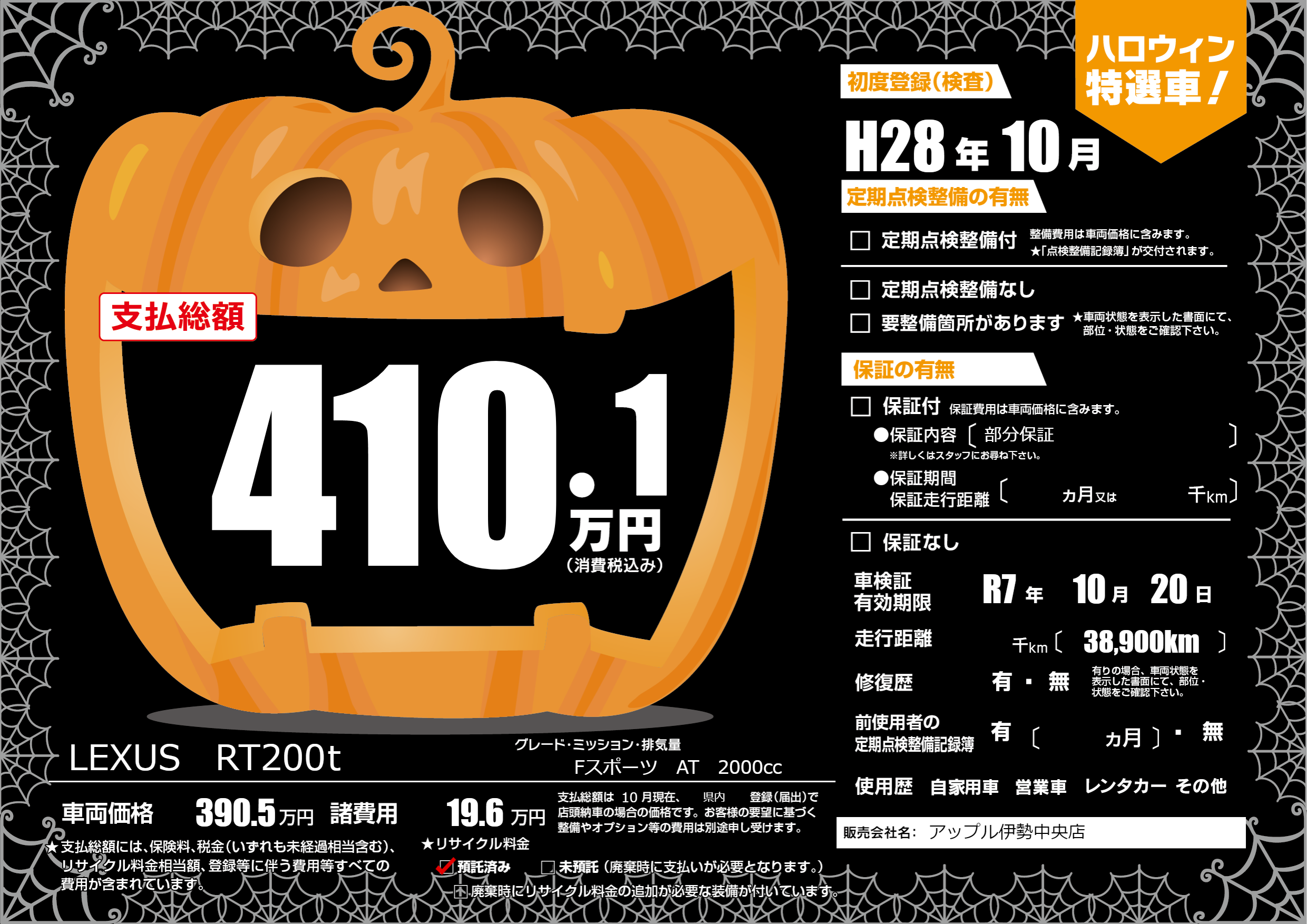 なし | 車検制限 | R7年10月20月 |