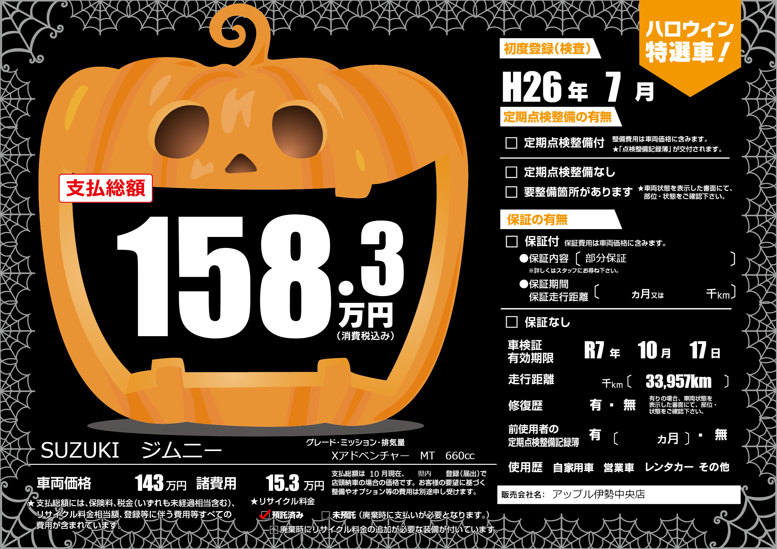 | 車名 | SUZUKI ジムニー | グレード ミッション 排気量 |