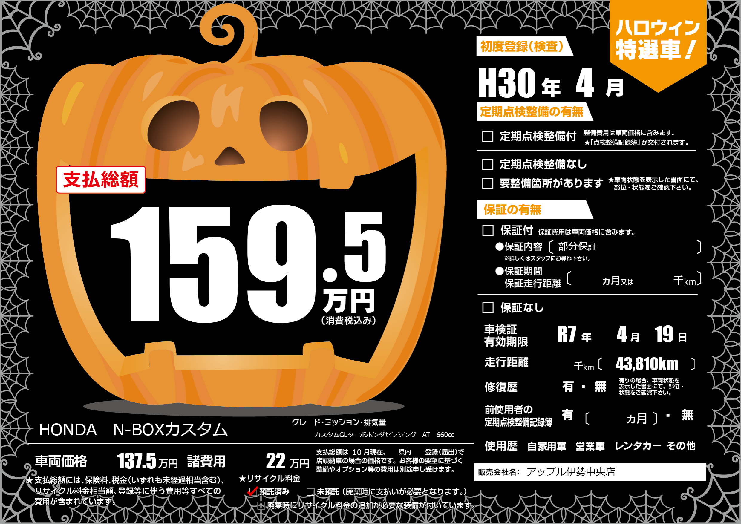 | 車名 | HONDA N-BOXカスタム | グレード ミッション 排気量 |