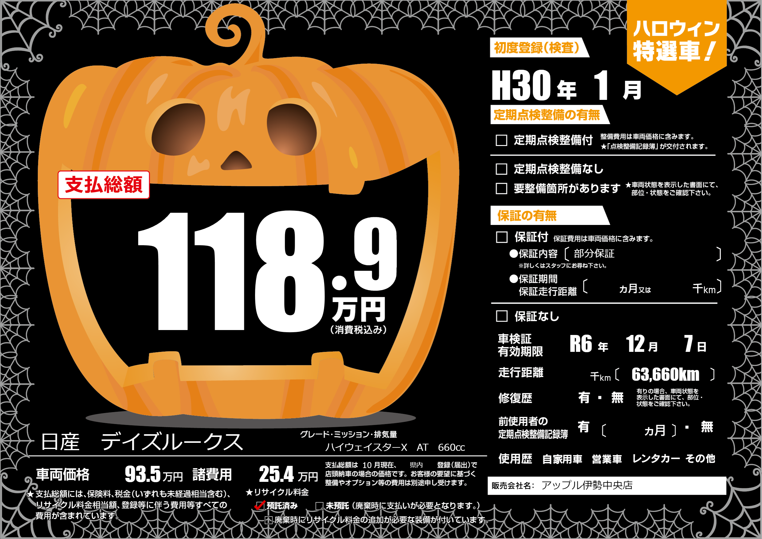 | 車名 | 日産 デイズルークス | グレード ミッション 排気量 |