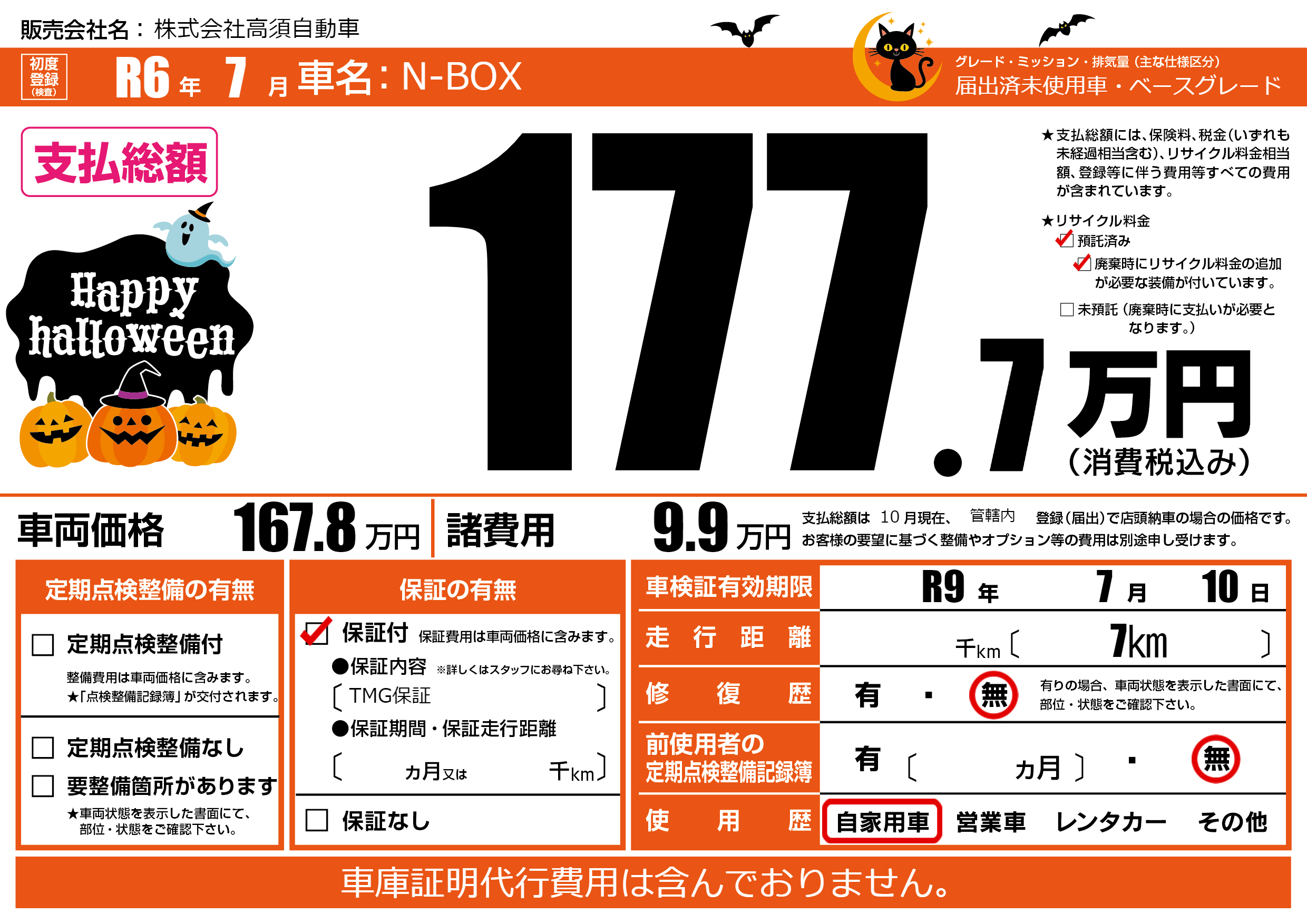 | 走行キロ | - | 初年度登録 | R6年7月 |