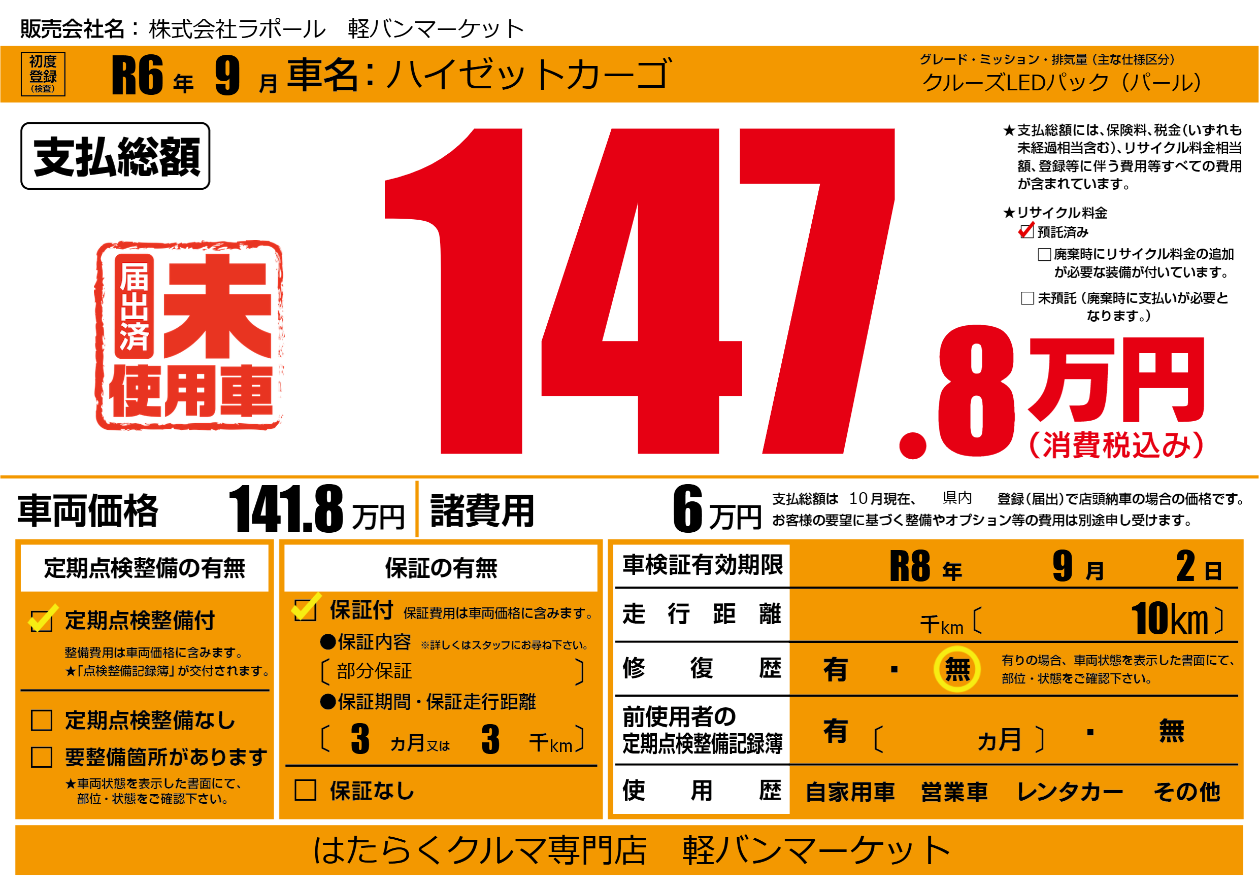 | 走行キロ | - | 初年度登録 | R6年9月 |