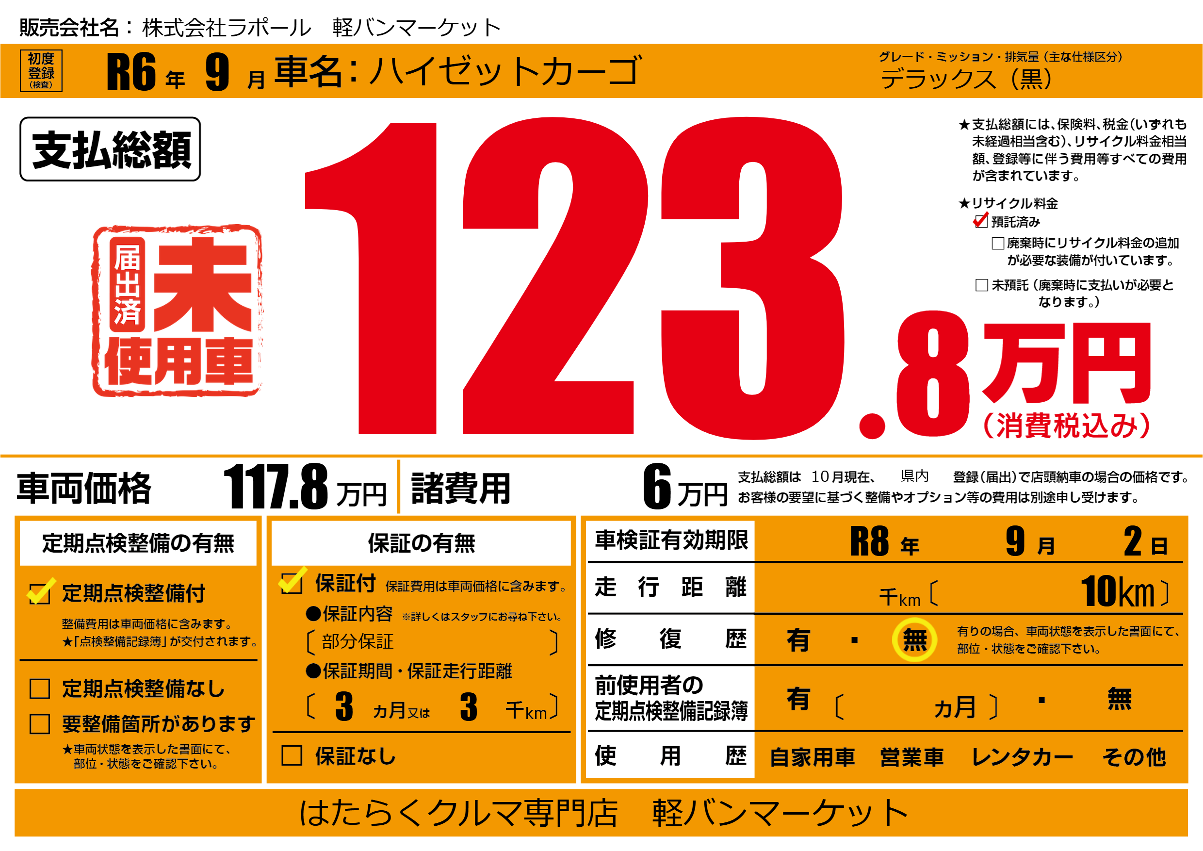 | 走行キロ | - | 初年度登録 | R6年9月 |